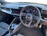 Audi connect emergency call and service, Audi drive select (Auto, Comfort, Dynamic and Individual), Audi smartphone interface, Audi Virtual Cockpit - 10.25"digital and colour instrument cluster, Automatic start/stop system with recuperation, Bluetooth interface, Collision avoidance assistant, Electromechanical power speed sensitive steering, Lane departure warning system, MMI Navigation Plus with high resolution 10.1"colour touch screen display, Service indicator, Trip computer, Voice control system with natural language interaction, 2xUSB-C connection with data and charging functions, 6 passive loudspeakers, DAB Digital radio, 3rd brake light, Acoustic glass windscreen, Aluminium window trim, Auto dimming frameless rear view mirror, Electrically adjustable/heated/folding/auto dimming door mirrors with integrated LED indications + kerb view function for passenger side, Front electric windows, Illuminated aluminium inserts front door sills with S logo, LED daytime running lights, LED headlights with LED rear lights and dynamic rear indicators, Light and rain sensors, Privacy glass - dark tinted rear window, rear door and side windows, Rear electric windows, Rear side air outlets in grained matt black, Rear side wing doors, Rear wiper, S line bumpers, S roof spoiler, 12V socket and storage compartment in front centre console, 3 seat bench in 2nd row, 40/20/40 split folding rear seat bench with cupholder, Black cloth headlining, Dual zone electronic climate control, Front and rear centre armrest in leather, Front and rear headrests, Front/rear floor mats, Height and reach adjustable steering wheel, Interior lighting - glove compartment light and right hand side, Luggage compartment floor covering, Manual boot compartment lid, Manually adjustable front seats, Seat side bolsters, Single front passenger seat, Stainless steel pedals and front footrest in black, Twin leather upholstery with front sports seats S embossed logo, Aluminium interior elements pack - A3 Sportback, S line styling pack - A3 Sportback, 3x3 point rear seat belts, Driver and front passenger airbag with passenger airbag deactivation, Electronic Stabilisation Control (ESC) including ABS, ASR and EDL, First aid kit with warning triangle and 2 safety vests, Front side airbags with head airbags and interaction airbag, Hill hold assist, Pre-sense front with pedestrian and cyclist detection, Seatbelt monitoring, Tyre pressure loss indicator, Anti theft alarm, Anti-theft wheel bolts, Electronically operated child lock, Immobiliser, Remote control central locking, Accent surfaces in the dashboard and centre console in platinum grey silk effect paint finish, Dark spectrum aluminium inlays,