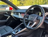 Audi connect emergency call and service, Audi drive select (Auto, Comfort, Dynamic, Efficiency and Individual), Audi smartphone interface, Audi Virtual Cockpit - 10.25"digital and colour instrument cluster, Automatic start/stop system with recuperation, Bluetooth interface, Collision avoidance assistant, Electromechanical power speed sensitive steering, Lane departure warning system, MMI Navigation Plus with high resolution 10.1"colour touch screen display, Service indicator, Voice control system with natural language interaction, 1xUSB-A and 1xUSB-C connection, 6 passive loudspeakers, CD player, DAB Digital radio, Acoustic glass windscreen, Aluminium window trim, Auto dimming frameless rear view mirror, Body colour exterior mirrors, Electrically adjustable/heated/folding/dimming door mirrors with kerb view includes integrated LED indications + kerb view function for passenger side, Front electric windows, Illuminated door sills with aluminium inserts at the front with S logo, LED daytime running lights, Light and rain sensors, Model and engine designation badges at rear, Privacy glass - dark tinted rear window, rear door and side windows, Rear electric windows, S line bumpers, S roof spoiler, 12V socket and storage compartment in front centre console, 40/20/40 split folding rear seat bench with cupholder, Black cloth headlining, Dual zone electronic climate control, Front and rear centre armrest in leather, Front and rear headrests, Front/rear floor mats, Height and reach adjustable steering wheel, Interior lighting - glove compartment light and right hand side, Luggage compartment floor covering, Manual boot compartment lid, Manually adjustable front seats, Seat side bolsters, Stainless steel pedals and front footrest, Twin leather upholstery with front sports seats S embossed logo, Aluminium interior elements pack - A3 Saloon, S line styling pack - A3 Saloon, 3x3 point rear seat belts, Driver and front passenger airbag with passenger airbag deactivation, Electronic Stabilisation Control (ESC) including ABS, ASR and EDL, First aid kit with warning triangle and 2 safety vests, Hill hold assist, Pre-sense front with pedestrian and cyclist detection, Seatbelt monitoring, Tyre pressure loss indicator, Anti theft alarm, Anti-theft wheel bolts, Electronically operated child lock, Immobiliser, Remote control central locking, Aluminium air vent surrounds, Aluminium trim elements, Dark spectrum aluminium inlays, accent surfaces in the dashboard and centre console in platinum grey silk effect paint finish,