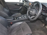 Audi drive select, Audi Pre sense collision avoidance, Audi smartphone interface, Colour driver's information system display, Electro-mechanical PAS, MMI SD card Navigation, Mobile telephone preparation - bluetooth interface, Power boot opening and closing, Service interval indicator, Stop/start button, Voice control system, 2 USB ports, Aux input, DAB digital radio module, MMI radio plus with CD player, Acoustic windscreen, Air inlets in titanium black, Auto dimming rear view mirror, Automatic headlights + automatic windscreen wipers, Body colour bumpers, Body colour door handles, Chrome rolled exhaust, Electric adjustable heated door mirrors, Electric front windows, Electric rear windows, Headlight range control, High gloss black triangular aperture at rear door, LED daytime running lights, LED indicators in door mirrors, Privacy glass with front acoustic glazing, Rain and light sensors, Rear diffuser in Twilight grey matt, Rear wiper, Roof spoiler, 3 spoke flat bottom high multi-function leather steering wheel, 3 zone climate control, Black cloth headlining, Front centre armrest with 12v socket, Front headrests, Front/rear floor mats, Gearshift paddles, Illuminated door sill finishers, Isofix child seat preparation for front passenger/outer rear seats inc passenger airbag deactivation, Jack and tool kit, Luggage compartment carpet, Perforated leather gearknob, Reach + rake adjustable steering column, Rear headrests, Retractable load area cover, Split folding rear seats, Stainless steel foot rest, Stainless steel pedals, Sunvisors with vanity mirrors, Top tether anchor plate for isofix child seat, Black styling pack - A4/S4 Avant, Non Smokers pack, S line exterior styling pack - A4 Avant, 3 point seatbelts on all rear seats, ABS/EBD, Active bonnet, Adaptive driver and front passenger airbags, EDL + ASR, Electromechanical parking brake, ESP, First aid kit, Front head airbags, Front seatbelt pretensioners + load limiters, Front side airbags, Multi-Collision braking, Seatbelt warning, Traction control, Tyre pressure monitoring system, Warning triangle, Anti theft alarm, Keyless Start, Locking wheel bolts, Remote central locking, Thatcham category 1 alarm + immobiliser, Piano black finish inlay, Space saver spare wheel,