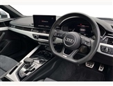 Audi connect safety and service (e-call), Audi connect with Amazon Alexa Integration, Audi drive select, Audi smartphone interface, Audi virtual cockpit, Automatic start-stop system with coasting functionality and efficiency programme, Bluetooth interface, Electric boot lid release, Electromechanical power steering, Email, calendar and text messages displayed via MMI, MMI Navigation plus with MMI touch includes 10.1"high resolution colour MMI display, 3D map, Voice control system, 54 litre fuel tank, Sports suspension lowered by 23mm, 2 USB charging ports, 8 passive loudspeakers, DAB digital radio reception, Auto dimming rear view mirror, Body colour door handles, Body colour front spoiler lip, Body colour side sill trim, Body coloured door mirrors, Electrically folding auto dimming/adjustable/heated door mirrors with LED side indicators and kerb view function for passenger side, Grained matt black side air inlets with matt aluminium silver inlay, High beam assistant, Honeycomb structure radiator grille in grained matt black, LED headlights with LED rear lights + dynamic rear indicators + headlight adjustment and high beam, turning light + LED daytime running lights, LED third brake light, Matt aluminium silver tailpipe trim, Privacy glass, Rain and light sensors, Rear boot, Rear side wing doors, S Line badges on the front wings, S line front and rear bumpers with side skirts, S Line rear diffuser in matt titanium black with trim strip in matt aluminium silver, Variable intermittent front wash/wipe, Windscreen with acoustic glazing, 4 way electric lumbar support for driver and front passenger, 40/20/40 split folding 3 rear seat bench in 3 parts with rear centre armrest, Black cloth headlining, Black perforated leather gearknob, Contrast stitching on seats, steering wheel and gear lever gaiter, Deluxe 3 zone electronic climate control, Door sill trims with aluminium inlay, Front and rear head restraints, Front centre armrest, Heated front seats, Illuminated door sill trims with S logo, ISOFIX child seat mounting and top tether, Manual seat adjustment, Single front passenger seat, Stainless steel pedals and foot rest, High gloss package - A4, LED Interior light pack - A4/S4, 3 rear seatbelts, 6 airbags - Driver, front passenger, curtain and side windows, Electronic Stabilisation Control (ESC) including ABS, ASR and EDL, Hill hold assist, Multi collision brake assist, Pop-up bonnet for pedestrian protection, Pre sense city, Rear door child safety locks, Seatbelt monitoring, Warning triangle and first aid kit, Anti theft alarm, Anti theft wheel bolts, Central locking, Keyless Go, Matt brushed aluminium inlays, Tool kit, Tyre repair kit,