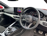 Audi connect safety and service (e-call), Audi connect with Amazon Alexa Integration, Audi drive select (Auto, Comfort, Dynamic, Efficiency and Individual), Audi parking system plus with front and rear sensors, Audi smartphone interface, Audi virtual cockpit - 12.3"full colour digital instrument cluster,vehicle/engine speed,Radio/media information+Driver assistance systems, Automatic start-stop system with coasting functionality and efficiency programme, Bluetooth interface, Electro-mechanical power steering, Email, calendar and text messages displayed via MMI, MMI nav+ with MMI touch - 10.1"high resolution MMI display, touch sensitive, 3D map, route/country info, dynamic route guide, personal route assist, Power operated tailgate, Rear view camera, Service interval indicator, Voice control system, Diesel particulate filter, Sports suspension lowered by 23mm, 8 passive loudspeakers, CD player, DAB digital radio reception, Two additional USB ports for rear passenger in rear centre console, Two SDXC card slots, Audi matrix LED headlights with LED rear lights + dynamic front and rear indicators, Auto dimming rear view mirror, Body colour bumpers, Body colour door handles, Body colour front spoiler lip, Body colour side sill trim, Body coloured door mirrors, Electric adjustable heated door mirrors, Electric folding door mirrors, Electric front windows, Front fog lights, Honeycomb structure radiator grille in grained matt black, LED daytime running lights, Matt aluminium silver tailpipe trim, Privacy glass, Rain and light sensors, S line badges on front wings, S line front and rear bumpers with side skirts, S Line rear diffuser in matt titanium black with trim strip in matt aluminium silver, Side air inlets in grained matt black with matt aluminium silver inlay, Windscreen with acoustic glazing, 4 way electric lumbar support for driver and front passenger, 40/20/40 split folding 3 seater rear bench seat, Adjustable steering column, Black cloth headlining, Black perforated leather gearknob, Contrast stitching on seats, steering wheel and gear lever gaiter, Deluxe 3 zone electronic climate control, Front centre armrest, Front head restraints, Front/rear floor mats, Heated front seats, Illuminated door sill trim with S logo, ISOFIX child seat mounting and top tether, Luggage compartment mat, Manual seat adjustment, Rear headrests, Stainless steel pedals, Sunvisors with vanity mirrors, LED interior light pack - A5/RS5, 3x3 point rear seatbelts, 6 airbags - Driver, front passenger, curtain and side airbags, Electromechanical parking brake, Electronic Stabilisation Control (ESC) including ABS, ASR and EDL, Front passenger airbag deactivation, Height adjustable front seatbelts, Hill hold assist, Multi collision brake assist, Pop-up bonnet for pedestrian protection, Pre sense city, Seatbelt monitoring, Tyre pressure warning, Variable restraint system, Warning triangle and first aid kit, Anti theft alarm system, Anti theft wheel bolts, Immobiliser, Keyless Go, Remote central locking, Matt brushed aluminium inlays, Tool kit, Tyre repair kit,