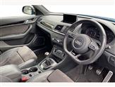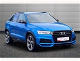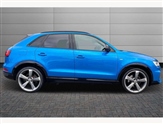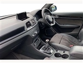 6.5"colour display screen, Audi drive select, Cruise control, Electro-mechanical PAS, Low washer fluid indicator, MMI - Multi Media Interface control system, On board computer, Remote electric boot opening/closing, Service interval indicator, Voice control system, Sports suspension, Audi music interface, BOSE sound system, DAB digital radio module, Acoustic windscreen, Aluminium window surround, Auto dimming rear view mirror, Black exhaust tailpipes, Black high gloss door mirrors, Black roof rails, Coming home function, Door mirror integrated indicators, Front and rear electric windows, Front fog lights, Front lip spoiler, Heated windscreen washer jets, High Gloss Black Contrast Bumpers, High Gloss Black rear spoiler, LED daytime running lights, LED headlights with headlight washers, LED rear lights, Light and rain sensor for auto activation of lights and windscreen wipers, Loading sill protector in stainless steel, Privacy glass, Rear diffuser with platinum insert, Rear wiper, S Line body styling, Sunband for windscreen, 12V socket in rear centre console, 3 spoke flat bottom multi-function perforated leather steering wheel with contrast stitching and aluminium gearshift paddles, Aluminium door sill trims, Aluminium gear knob, Black cloth headlining, Door sill trim strips, Dual zone climate control, Electric front lumbar adjustment, Front and rear headrests, Front and rear velour floor mats, Front centre armrest with storage compartment and angle adjustment, Front sports seats, Height/reach adjust steering wheel, ISOFIX on front passenger and rear outer seats, Jack and tool kit, Retractable luggage cover, Reversible boot floor, Split fold rear seat, Stainless steel pedals, Storage compartment and 12V socket, Under floor storage in luggage area, Audi Exclusive black styling pack - Q3, LED interior light pack - Q3, 3x3 point rear seatbelts, ABS+Electronic Brake force Distribution, Curtain airbags, Driver and passenger airbags, Driver and passenger side airbags, EDL + ASR, Electrically operated child locks on rear doors, Electromechanical parking brake, ESP, First aid kit, Front passenger airbag deactivation, Head airbags, Seatbelt warning light, Tyre pressure monitoring system, Warning triangle, Locking wheel bolts, Remote central locking, Thatcham category 1 alarm + immobiliser, Piano black finish inlay,