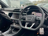 Amazon alexa Integration, Audi connect safety and service, Audi drive select, Audi lane departure warning, Audi Virtual Cockpit - 10.25"display, Bluetooth interface, Camera based traffic sign recognition, Distraction and Fatigue warning, Legal emergency call, MMI Navigation Plus with high resolution 10.1 inch touchscreen colour display, Power operated tailgate, Progressive steering, Service interval indicator, Smartphone interface includes wireless Apple carplay/Android Auto, Start stop system with recuperation, Voice control system with natural language interaction, Sports suspension, 2 USB-C ports with charge and data functions, 6 passive loudspeakers, DAB digital radio module, Acoustic windscreen, Audi Beam uses LEDs to project the Audi logo onto the ground as you exit your Q3, Auto dimming door mirrors, Auto dimming frameless rear view mirror, Black roof rails, Electrically folding, adjustable and heated door mirrors with integrated LED side indicators and kerb view function for passenger side, Front and rear electric windows, Front fog lights, Grille vertical bars in aluminium silver/Matt, High gloss black finish B and C pillars, LED Dynamic rear indicators, LED headlights with LED daytime running lights, LED rear lights, LED third brake light, Privacy glass dark tinted rear and rear-side windows (from B-pillar backwards), Rain and light sensors, Rear diffuser grille in grained matt black, Rear diffuser strip in matt anthracite black, Rear side wing doors, Rear wiper, S line bumpers in contrasting Manhattan grey, Variable front intermittent wipers, 12V socket in rear centre console, 3 seat bench in 2nd row, 40:20:40 folding with manual adjustment for 60:40 forwards/backwards position and backrest angle, Adjustable rear seat bench/backrest with centre armrest and cupholder, Black cloth headlining, Dual zone electronic climate control, Electric lumbar support, Front and rear black floor mats with contrast stitching in rock grey, Front and rear headrests, Front centre armrest, Height and reach adjustable steering wheel, Illuminated door sill trims with S logo, ISOFIX child seat mounting for front passenger with airbag deactivation and outer rear seat including top tether attachment point for outer rear seats, Manual front seats with height adjustment, Perforated leather gearknob, Single front passenger seat, Stainless steel luggage compartment sill finisher, Stainless steel pedals, Twin leather upholstery with front sport seats + S embossing, Black styling pack - Q3, Non smoking pack - Q3, 3x3 point rear seatbelts, 6 airbags - Driver, front passenger, curtain and side windows, Audi pre-sense front with pedestrain and cyclist recognition, Electrically operated child locks on rear doors, Electromechanical parking brake, Electronic stabilisation control including ABS, ASR and EDL, Front seatbelt reminder, Hill descent control, Hill hold assist, Pre sense basic, Seatbelt monitoring, Tyre pressure warning, Warning triangle and first aid kit, Anti theft wheel bolts, Immobiliser, Remote central locking, Thatcham approved category 1 anti theft alarm, Aluminium look interior elements, Detail dashboard around MMI touch colour display in glass look, black with surround in aluminium look, Leatherette door armrest, Piano black inlay,