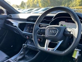 Amazon alexa Integration, Audi connect safety and service, Audi drive select, Audi lane departure warning, Audi smartphone interface includes wireless Apple carplay/Android Auto, Audi Virtual Cockpit - 10.25"display, Bluetooth interface, Camera based traffic sign recognition, Distraction and Fatigue warning, Legal emergency call, MMI Navigation Plus with high resolution 10.1 inch touchscreen colour display, Power operated tailgate, Progressive steering, Service interval indicator, Start stop system with recuperation, Voice control system with natural language interaction, Sports suspension, 2 USB-C ports with charge and data functions, 6 passive loudspeakers, DAB digital radio module, Acoustic windscreen, Audi Beam uses LEDs to project the Audi logo onto the ground as you exit your Q3, Auto dimming door mirrors, Auto dimming frameless rear view mirror, Black roof rails, Electrically folding, adjustable and heated door mirrors with integrated LED side indicators and kerb view function for passenger side, Front and rear electric windows, Front fog lights, Grille vertical bars in aluminium silver/Matt, High gloss black finish B and C pillars, LED Dynamic rear indicators, LED headlights with LED daytime running lights, LED rear lights, LED third brake light, Privacy glass dark tinted rear and rear-side windows (from B-pillar backwards), Rain and light sensors, Rear diffuser grille in grained matt black, Rear diffuser strip in matt anthracite black, Rear side wing doors, Rear wiper, S line bumpers in contrasting Manhattan grey, Variable front intermittent wipers, 12V socket in rear centre console, 3 seat bench in 2nd row, 40:20:40 folding with manual adjustment for 60:40 forwards/backwards position and backrest angle, Adjustable rear seat bench/backrest with centre armrest and cupholder, Black cloth headlining, Dual zone electronic climate control, Electric lumbar support, Front and rear black floor mats with contrast stitching in rock grey, Front and rear headrests, Front centre armrest, Height and reach adjustable steering wheel, Illuminated door sill trims with S logo, ISOFIX child seat mounting for front passenger with airbag deactivation and outer rear seat including top tether attachment point for outer rear seats, Manual front seats with height adjustment, Perforated leather gearknob, Single front passenger seat, Stainless steel luggage compartment sill finisher, Stainless steel pedals, Twin leather upholstery with front sport seats + S embossing, Black styling pack - Q3, Non smoking pack - Q3, 3x3 point rear seatbelts, 6 airbags - Driver, front passenger, curtain and side windows, Audi pre-sense front with pedestrain and cyclist recognition, Electrically operated child locks on rear doors, Electromechanical parking brake, Electronic stabilisation control including ABS, ASR and EDL, Front seatbelt reminder, Hill descent control, Hill hold assist, Pre sense basic, Seatbelt monitoring, Tyre pressure warning, Warning triangle and first aid kit, Anti theft alarm, Anti theft wheel bolts, Immobiliser, Remote central locking, Aluminium look interior elements, Detail dashboard around MMI touch colour display in glass look, black with surround in aluminium look, Leatherette door armrest, Piano black inlay,