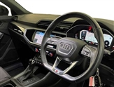 Amazon alexa Integration, Audi drive select, Audi lane departure warning, Audi Virtual Cockpit - 10.25"display, Bluetooth interface, Camera based traffic sign recognition, Legal emergency call, MMI Navigation Plus with high resolution 10.1 inch touchscreen colour display, Power operated tailgate, Progressive steering, Service interval indicator, Smartphone interface includes wireless Apple carplay/Android Auto, Start stop system with recuperation, Voice control system with natural language interaction, Sports suspension, 2 USB-C ports with charge and data functions, 6 passive loudspeakers, DAB digital radio module, Acoustic windscreen, Auto dimming frameless rear view mirror, Black roof rails, Electrically folding, adjustable and heated door mirrors with integrated LED side indicators and kerb view function for passenger side, Front and rear electric windows, Front fog lights, Grille vertical bars in aluminium silver/Matt, High gloss black finish B and C pillars, LED headlights with LED daytime running lights, LED rear lights, LED third brake light, Privacy glass dark tinted rear and rear-side windows (from B-pillar backwards), Rain and light sensors, Rear diffuser grille in grained matt black, Rear diffuser strip in matt titanium black, Rear side wing doors, Rear wiper, S line bumpers in contrasting Manhattan grey, Variable front intermittent wipers, 12V socket in rear centre console, 3 seat bench in 2nd row, 40:20:40 folding with manual adjustment for 60:40 forwards/backwards position and backrest angle, Adjustable rear seat bench/backrest with centre armrest and cupholder, Black cloth headlining, Dual zone electronic climate control, Front and rear black floor mats with contrast stitching in rock grey, Front and rear headrests, Front and rear roof module including reading lights, Front centre armrest, Glove compartment lighting, Height and reach adjustable steering wheel, Illuminated door sill trims with S logo, ISOFIX child seat mounting for front passenger with airbag deactivation and outer rear seat including top tether attachment point for outer rear seats, Luggage compartment light, Manual front seats with height adjustment, Perforated leather gearknob, Single front passenger seat, Stainless steel luggage compartment sill finisher, Stainless steel pedals, Black styling pack - Q3, Non smoking pack - Q3, 3x3 point rear seatbelts, 6 airbags - Driver, front passenger, curtain and side windows, Audi pre-sense front with pedestrain and cyclist recognition, Electromechanical parking brake, Electronic stabilisation control including ABS, ASR and EDL, Front seatbelt reminder, Hill descent control, Hill hold assist, Manual child lock in rear doors, Pre sense basic, Seatbelt monitoring, Tyre pressure warning, Warning triangle and first aid kit, Anti theft alarm, Anti theft wheel bolts, Immobiliser, Remote central locking, Detail dashboard around MMI touch colour display in glass look, black with surround in aluminium look, Leatherette door armrest, Piano black inlay,