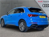 Audi connect safety and service (e-call), Audi drive select, Audi lane departure warning, Audi side assist, Audi Virtual Cockpit - 10.25"display, Bluetooth interface, Camera based traffic sign recognition, MMI Navigation Plus with high resolution 10.1 inch touchscreen colour display, Power operated tailgate, Progressive steering, Service interval indicator, Smartphone interface includes wireless Apple carplay/Android Auto, Start stop system with recuperation, Voice control system with natural language interaction, Sports suspension, 1 x USB type C and 1 USB type A charging points, 6 passive loudspeakers, DAB digital radio module, Acoustic windscreen, Aluminium roof rails, Aluminium window trim, Auto dimming frameless rear view mirror, Body coloured bumpers, Electrically folding, adjustable and heated door mirrors with integrated LED side indicators and kerb view function for passenger side, Front and rear electric windows, Front fog lights, Front side air inlets in matt platinum grey, Front spoiler blade in matt platinum grey, Grille vertical bars in aluminium silver/Matt, High gloss black finish B and C pillars, LED headlights with LED daytime running lights and dynamic rear indicator, LED rear lights, Privacy glass dark tinted rear and rear-side windows (from B-pillar backwards), Rain and light sensors, Rear diffuser strip in matt titanium black, S line badges on front wings, S Line front and rear bumpers, Side skirt insert in matt Platinium grey, Silver chrome grille surround, Titanium black radiator grille, 12V socket in rear centre console, 40:20:40 folding with manual adjustment for 60:40 forwards/backwards position and backrest angle, Adjustable rear seat bench/backrest with centre armrest and cupholder, Black cloth headlining, Dual zone electronic climate control, Front and rear black floor mats with contrast stitching in rock grey, Front and rear headrests, Front and rear roof module including reading lights, Front centre armrest, Glove compartment lighting, Height and reach adjustable steering wheel, Illuminated door sill trims with S logo, ISOFIX child seat mounting for front passenger with airbag deactivation and outer rear seat including top tether attachment point for outer rear seats, Luggage compartment light, Manual front seats with height adjustment, Perforated leather gearknob, Stainless steel luggage compartment sill finisher, Stainless steel pedals, Non smoking pack - Q3, 3x3 point rear seatbelts, 6 airbags - Driver, front passenger, curtain and side windows, Audi pre-sense front with pedestrain and cyclist recognition, Electrically operated child locks on rear doors, Electromechanical parking brake, Electronic stabilisation control including ABS, ASR and EDL, Hill descent control, Hill hold assist, Pre sense basic, Seatbelt monitoring, Tyre pressure warning, Warning triangle and first aid kit, Anti theft alarm, Anti theft wheel bolts, Remote central locking, Dark matt brushed aluminium inlay, Detail dashboard around MMI touch colour display in glass look, black with surround in aluminium look, Leatherette door armrest,