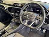 360 degree camera, Amazon alexa Integration, Audi connect safety and service, Audi drive select, Audi lane departure warning, Audi Virtual Cockpit - 10.25"display, Bluetooth interface, Camera based traffic sign recognition, Legal emergency call, MMI Navigation Plus with high resolution 10.1 inch touchscreen colour display, Phonebox light with wireless charging, Power operated tailgate, Progressive steering, Service interval indicator, Smartphone interface includes wireless Apple carplay/Android Auto, Start stop system with recuperation, Voice control system with natural language interaction, Sports suspension, 2 USB-C ports with charge and data functions, DAB digital radio module, SONOS premium sound system, Acoustic windscreen, Audi Beam uses LEDs to project the Audi logo onto the ground as you exit your Q3, Auto dimming door mirrors, Auto dimming frameless rear view mirror, Black roof rails, Electrically folding, adjustable and heated door mirrors with integrated LED side indicators and kerb view function for passenger side, Front and rear electric windows, Front fog lights, Grille vertical bars in aluminium silver/Matt, High gloss black finish B and C pillars, LED Dynamic rear indicators, LED rear lights, LED third brake light, Matrix LED headlights with LED daytime running lights, Panoramic glass sunroof, Privacy glass dark tinted rear and rear-side windows (from B-pillar backwards), Rain and light sensors, Rear diffuser grille in grained matt black, Rear diffuser strip in matt anthracite black, Rear side wing doors, Rear wiper, S line bumpers in contrasting Manhattan grey, Variable front intermittent wipers, 12V socket in rear centre console, 3 seat bench in 2nd row, 40:20:40 folding with manual adjustment for 60:40 forwards/backwards position and backrest angle, Adjustable rear seat bench/backrest with centre armrest and cupholder, Black cloth headlining, Dual zone electronic climate control, Electric lumbar support, Electrically adjustable front seats, Front and rear black floor mats with contrast stitching in rock grey, Front and rear headrests, Front centre armrest, Heated front seats, Height and reach adjustable steering wheel, Illuminated door sill trims with S logo, ISOFIX child seat mounting for front passenger with airbag deactivation and outer rear seat including top tether attachment point for outer rear seats, Perforated leather gearknob, Single front passenger seat, Stainless steel luggage compartment sill finisher, Stainless steel pedals, Twin leather upholstery with front sport seats + S embossing, Black styling pack - Q3, Non smoking pack - Q3, 3x3 point rear seatbelts, 6 airbags - Driver, front passenger, curtain and side windows, Audi pre-sense front with pedestrain and cyclist recognition, Electrically operated child locks on rear doors, Electromechanical parking brake, Electronic stabilisation control including ABS, ASR and EDL, Front seatbelt reminder, Hill descent control, Hill hold assist, Pre sense basic, Seatbelt monitoring, Tyre pressure warning, Warning triangle and first aid kit, Advanced key, Anti theft alarm, Anti theft wheel bolts, Immobiliser, Remote central locking, Aluminium look interior elements, Detail dashboard around MMI touch colour display in glass look, black with surround in aluminium look, Leatherette door armrest, Piano black inlay,