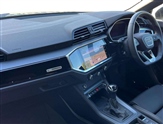 Amazon alexa Integration, Audi connect safety and service, Audi drive select, Audi lane departure warning, Audi Virtual Cockpit - 10.25"display, Bluetooth interface, Camera based traffic sign recognition, Distraction and Fatigue warning, Legal emergency call, MMI Navigation Plus with high resolution 10.1 inch touchscreen colour display, Power operated tailgate, Progressive steering, Service interval indicator, Smartphone interface includes wireless Apple carplay/Android Auto, Start stop system with recuperation, Voice control system with natural language interaction, Sports suspension, 2 USB-C ports with charge and data functions, 6 passive loudspeakers, DAB digital radio module, Acoustic windscreen, Audi Beam uses LEDs to project the Audi logo onto the ground as you exit your Q3, Auto dimming door mirrors, Auto dimming frameless rear view mirror, Black roof rails, Electrically folding, adjustable and heated door mirrors with integrated LED side indicators and kerb view function for passenger side, Front and rear electric windows, Front fog lights, Grille vertical bars in aluminium silver/Matt, High gloss black finish B and C pillars, LED Dynamic rear indicators, LED headlights with LED daytime running lights, LED rear lights, LED third brake light, Privacy glass dark tinted rear and rear-side windows (from B-pillar backwards), Rain and light sensors, Rear diffuser grille in grained matt black, Rear diffuser strip in matt anthracite black, Rear side wing doors, Rear wiper, S line bumpers in contrasting Manhattan grey, Variable front intermittent wipers, 12V socket in rear centre console, 3 seat bench in 2nd row, 40:20:40 folding with manual adjustment for 60:40 forwards/backwards position and backrest angle, Adjustable rear seat bench/backrest with centre armrest and cupholder, Black cloth headlining, Dual zone electronic climate control, Electric lumbar support, Front and rear black floor mats with contrast stitching in rock grey, Front and rear headrests, Front centre armrest, Height and reach adjustable steering wheel, Illuminated door sill trims with S logo, ISOFIX child seat mounting for front passenger with airbag deactivation and outer rear seat including top tether attachment point for outer rear seats, Manual front seats with height adjustment, Perforated leather gearknob, Single front passenger seat, Stainless steel luggage compartment sill finisher, Stainless steel pedals, Twin leather upholstery with front sport seats + S embossing, Black styling pack - Q3, Non smoking pack - Q3, 3x3 point rear seatbelts, 6 airbags - Driver, front passenger, curtain and side windows, Audi pre-sense front with pedestrain and cyclist recognition, Electrically operated child locks on rear doors, Electromechanical parking brake, Electronic stabilisation control including ABS, ASR and EDL, Front seatbelt reminder, Hill descent control, Hill hold assist, Pre sense basic, Seatbelt monitoring, Tyre pressure warning, Warning triangle and first aid kit, Anti theft alarm, Anti theft wheel bolts, Immobiliser, Remote central locking, Aluminium look interior elements, Detail dashboard around MMI touch colour display in glass look, black with surround in aluminium look, Leatherette door armrest, Piano black inlay,