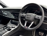 All wheel steering, Audi connect safety and service (e-call), Audi connect with Amazon Alexa Integration, Audi drive select (Auto, Comfort, Dynamic, Efficiency, Individual, Off-road and All road), Audi phone box light with wireless charging, Audi virtual cockpit plus, Bluetooth interface, Camera based traffic sign recognition, MMI navigation plus with MMI touch screens includes 10.1"and 8.6"screens with haptic feedback, Natural voice recognition, Power door closure, Power operated tailgate, Smartphone interface includes wireless Apple carplay/Android Auto, Start/stop system, 48V Mild hybrid technology, 85 litre fuel tank, Adaptive air sports suspension, Quattro all wheel drive with self locking centre differential, Audi music interface - front 2 USB-C ports with charger and data functions, DAB digital radio module, 3rd brake light, Adaptive windscreen wipers with integrated washer jets, Aluminium window trim, Audi Beam uses LEDs to project S emblem with red rhombus onto the ground when opening the side doors (front/rear), Audi HD matrix LED headlights with Audi laser light + dynamic front and rear indicators, Auto dimming frameless rear view mirror, Black roof rails, Bumpers in contrast paint scandium grey finish includes door trim and wheel arch trim strips, inlays in door strip contain quattro embossing, Electrically adj heated/folding + automatically dimming exterior mirrors with memory + automatic kerb side function for passenger side exterior mirror, Headlight washers, Heat insulating glass in windshield, Integrated LED indications in door mirrors, LED daytime running lights, LED rear tail lights, Privacy glass - dark tinted rear and rear side windows from B-pillar backwards, Rear side wing doors, Rear wiper, 2 seat bench in 3rd row, 3 seat bench in 2nd row, 3 spoke heated leather multi-function sport steering including paddle shift, 7 seat layout with ISOFIX points for the front passenger seat and rear passenger seat, Black dinamica headlining, Comfort front centre armrest, Double sun visors with illuminated vanity mirrors, Electric adjustable front seats/backrest bolsters, lumbar support, memory functionality, Electric steering wheel adjustment, Folding rear seats, Front head restraints, Front/rear floor mats, Heated front seats, Illuminated door sill trims with S logo, Luggage compartment sill protection in stainless steel, Manual sunblind for the rear side windows and manual sunblind for the rear window, Rear head restraints, Seat ventilation and massage function in the front, Single front passenger seat, Stainless steel pedals, Valcona leather upholstery with front super sport seat S embossed logo, Black styling pack plus - Q7, City assist pack - Q7, Extended leather pack - Q7, Multi-coloured extended LED Interior lighting pack - Q7, Technology Pack Pro - Q7, Tour pack with Adaptive cruise assist - Q7, 3 point seatbelts on all rear seats, Audi pre sense front, Child locks on rear doors, Driver and front passenger, front side and curtain airbags, Electromechanical parking brake, Electronic Stabilisation Control (ESC) including ABS, ASR and EDL, Extended pedestrian protection measures, Hill hold assist, Seatbelt monitoring, Tyre pressure loss indicator, Warning triangle and first aid kit, Anti theft alarm, Anti-theft wheel bolts and wheel loosening detection, Remote central locking, Polished oak trim with grey finish inlay, 22"5-V Spoke aluminium star design audi sport matt grey with gloss turned finish alloy wheels, Tool kit, Tyre repair kit,
