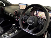 Audi connect, Audi drive select, Audi smartphone interface, Audi virtual cockpit - 12.3"high-resolution LCD display with fully customisable instrument cluster, MMI navigation plus with MMI touch, Mobile telephone preparation - bluetooth interface, Progressive power assisted steering, Service interval indicator, Speed limit display, Voice control system, RS sports suspension, 2 USB ports, Audi music interface, Auxiliary input socket, DAB Digital radio, Audi Beam uses LEDs to project the Audi Sport logo, Auto dimming rear view mirror with light and rain sensors, Black high gloss front air inlet, Body coloured side sills, Electric front windows, Electric operated/heated door mirrors, Electric rear windows, Headlight washers, Heated windscreen washer jets, High gloss black rear diffuser, LED daytime running lights, Rear wiper, RS design body styling, 3 adjustable rear headrests, 3 spoke flat bottomed sports multifunctional leather steering wheel with aluminium look gearshift paddles, 4 lashing points to secure luggage, 60/40 split folding rear seat, Adjustable front armrest, Dual zone electronic climate control, Front and rear interior lights with delay, Heated front seats, Height/depth adjustable steering column, ISOFIX child seat preparation+airbag deactivation, Jack and tool kit, Stainless steel pedals, Storage compartment in centre console, Storage compartment under front seats, Storage compartments in doors, Black Styling pack - RS3, LED interior light pack - A3/RS3, Non smoking pack - RS3, Storage and luggage pack - A3/RS3, 3 point seatbelts on all seats, ABS/EBD, Active bonnet, Active front headrests, ASR, Curtain airbags, Driver and passenger side airbags, Driver/Front Passenger airbags, Drivers knee airbag, EDL, Electromechanical parking brake, ESC - Electronic Stability Control + traction control, Manual rear child locks, Multi-Collision braking, Seatbelt warning, Warning triangle and first aid kit, Anti theft alarm, Anti-theft wheel bolts, Remote control central locking, Thatcham category 1 alarm + immobiliser, Aluminium trim elements, Tyre repair kit,