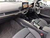 7"Colour driver information system, Audi connect safety and service (e-call), Audi drive select, Audi side assist, Audi smartphone interface, Audi virtual cockpit with RS specific display, Automatic start-stop system with coasting functionality and efficiency programme, Bluetooth interface, Camera based traffic sign recognition, Electromechanical power steering, Email, calendar and text messages displayed via MMI, Lane departure warning, MMI Navigation plus with MMI touch includes 10.1"high resolution colour MMI display, 3D map, Power opening/closing tailgate, Service interval indicator, Voice control system, 58 Litre fuel tank, Quattro sports differential, 2 USB charging ports, Audi sound system, DAB digital radio module, 3rd brake light, Acoustic windscreen, Audi Beam uses LEDs to project the RS logo onto ground as you exit your RS4, Audi matrix LED headlights with LED rear lights + dynamic front and rear indicators, Audi rings and lettering glossy black, Auto dimming rear view mirror, Automatic headlights + automatic windscreen wipers, Black roof rails, Blue tinted glass, Body colour door handles, Electric front windows, Electric rear windows, Electrically folding auto dimming/adjustable/heated door mirrors with memory function, LED side indicators and kerb view function for passenger side, Flared front and rear wheel arches, Front bumper with enlarged air inlets, Headlight range control, High beam assistant, High gloss black door mirror housing, High gloss black triangular aperture at rear door, Honeycomb design grille with quattro logo, Lateral air inlets next to front headlights, LED daytime running lights, LED indicators in door mirrors, Privacy glass with rear acoustic glazing, Rain and light sensors, Rear side wing doors, Rear wiper, Roof spoiler, RS 4 badges on grille and rear, RS4 dual branch chrome tailpipes with left and right oval pipes, 3 seat bench in 2nd row, 3 spoke multifunction plus leather steering wheel with heating and RS badging, 40/20/40 split folding rear seats with rear centre armrest, Black cloth headlining, Deluxe 3 zone electronic climate control, Door armrests and knee pad, Electric load area cover, Electrically adjustable front seats, Fine nappa leather with contrast honey comb stitching + super sports seats with pneumatic massage function, Front centre armrest, Front headrests, Front/rear floor mats, Heated front seats, Height and reach adjustable steering wheel with full size airbag, Illuminated door sill trims with RS4 logo, ISOFIX child seat mounting and top tether, Luggage compartment carpet, Perforated leather gear lever knob with contrast stitching, Rear headrests, Retractable load area cover, Single front passenger seat, Stainless steel pedals, Sunvisors with vanity mirrors, Carbon black styling pack - RS4, LED Interior light pack - RS4, Non Smokers pack, 3 point seatbelts on all rear seats, Adaptive driver and front passenger airbags, Attention and drowsiness assist, Electromechanical parking brake, Electronic stabilisation control including ABS, ASR and EDL, Enhanced braking system, Front head airbags, Front seatbelt pretensioners + load limiters, Front side airbags, Hill hold assist, Manual child lock in rear doors, Multi-Collision braking, Pop-up bonnet for pedestrian protection, Pre sense city, Rear side airbags, Seatbelt monitoring, Traction control, Tyre pressure warning, Variable restraint system, Warning triangle and first aid kit, Anti theft alarm, Anti-theft wheel bolts, Immobiliser, Keyless Go, Remote central locking, Remote control key with RS emblem, Carbon twill inlays, 20"5 segment spoke evo design glossy black sport alloy wheels, Tool kit, Tyre repair kit,