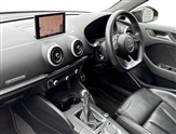 Audi connect, Audi drive select, Audi smartphone interface, Automatic start/stop system, Colour driver's information system display, Instrument dials with S3 logo, Mobile telephone preparation - bluetooth interface, Progressive power assisted steering, SD card based satellite navigation system, Service interval indicator, Speed limit display, Voice control system, Voice recognition for navigation system, S sports suspension, 2 USB interfaces and Aux-In jack, Audi music interface, Bang and Olufsen sound system, CD player, DAB Digital radio, MMI radio plus with 7"colour MMI screen and MMI controller, Audi Beam uses LEDs to project the Audi Sport logo, Auto dimming rear view mirror with light and rain sensors, Black door mirrors, Body colour roof spoiler with aerodynamic inserts in high gloss black, Electric front windows, Electric rear windows, Electrically adjustable and heated door mirrors with integrated LED side indicators, Headlight washers, Heated windscreen washer jets, LED daytime running lights, Privacy glass - dark tinted rear and rear side windows from B-pillar backwards, Rear wiper, Sport specific side air inlet grille and diffuser insert, Twin oval chrome trimmed exhaust tailpipes, 3 adjustable rear headrests, 4 lashing points to secure luggage, Adjustable front centre armrest, Black cloth headlining, Dual zone electronic climate control, Front and rear interior lights with delay, Front/rear floor mats, Glovebox light, Heated front seats, Height and reach adjustable steering wheel, Illuminated door sill trims with S logo, Isofix child seat preparation for front passenger/outer rear seats inc passenger airbag deactivation, Stainless steel pedals, Storage compartments in doors side trims, centre console and under front drivers seat, Black styling pack - A3/S3, LED interior light pack - A3/RS3, Non smoking pack - A3, Storage and luggage pack - A3/RS3, 3 point seatbelts on all seats, ABS/EBD, Active bonnet, Active front headrests, Airbags - front driver/passenger, front & rear side, curtain, drivers knee, ASR, EDL, Electromechanical parking brake, ESC - Electronic Stability Control + traction control, Front passenger airbag deactivation, Hill hold assist, Manual rear child locks, Multi-Collision braking, Seatbelt warning, Tyre pressure warning, Warning triangle and first aid kit, Anti theft alarm, Anti-theft wheel bolts, Remote control central locking, Thatcham category 1 alarm + immobiliser, Aluminium air vent surrounds, Aluminium trim elements, Matt brushed aluminium inlays, Tool kit, Tyre repair kit,