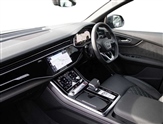 10.1"and 8.6"Dual colour touchscreens, 360 degree camera with top view, All wheel steering, Audi application store, Audi connect safety and service (e-call), Audi connect with Amazon Alexa Integration, Audi drive select, Audi phone box light with wireless charging, Audi virtual cockpit plus, Automatic start/stop system, Bluetooth, Electro-mechanical PAS, Head up Display, Low washer fluid indicator, MMI navigation plus with MMI touch, Natural voice recognition, On board computer, Operating buttons in black, glass look with haptic feedback, Power door closure, Power operated tailgate, Remote park assist plus, Service interval indicator, Smartphone interface includes wireless Apple carplay/Android Auto, 48V Mild hybrid technology, 85 litre fuel tank, Quattro all wheel drive with self locking centre differential, S specific Adaptive air suspension, Audi music interface with 2 USB ports with charge and data functions, Aux-in socket, Bang + Olufsen sound system, DAB Digital radio, 3rd brake light, Anthracite black door mirrors, Audi beam, Auto dimming frameless rear view mirror, Coming/leaving home lighting function, Digital OLED rear combination lamps, Electric front+rear windows, Electrically folding auto dimming/adjustable/heated door mirrors with memory function, LED side indicators and kerb view function for passenger side, HD Matrix LED headlights with Audi laser light, Headlight washers, Heat insulating glass in windshield, LED rear lights, LED signature daytime running lights, Platinum grey front spoiler lip and diffuser insert with honeycomb grille in black, Privacy glass - dark tinted rear and rear side windows from B-pillar backwards, Rain and light sensors, Rear side wing doors, Rear wiper, S specific dual brach chrome tailpipes on both the left and right, S specific front and rear bumpers, Singleframe grille surround in matte platinum grey, 3 bench rear seats in 2nd row, 3 spoke flat bottomed high multi-function leather sport steering wheel with gearshift paddles, 4 zone deluxe automatic climate control, 4-way lumbar support for front seats, 40:20:40 split folding rear bench seat, Black cloth headlining, Black leather instrument panel and centre console band with rock grey contrast stitching, artificial leather door armrest with contrast stitching, Comfort front centre armrest, Driver seat memory function, Electrically adjustable front seats, Front head restraints, Front/rear floor mats, Heated front and outer rear seats, ISOFIX child seat mounting for front passenger seat and 2 outer rear seats with top tether child seat mounting for all 3 rear seats, Luggage compartment sill protection in stainless steel, Power adjustable steering wheel, Rear centre armrest with 2 cupholders, Rear headrests, Seat cushion displaceable by 100mm in the ratio 60:40, Single front passenger seat, Stainless steel pedals, Sunvisors with illuminated vanity mirrors, Valcona leather upholstery + front super sport seats with S embossed logo, Ambient lighting package plus - Q8, Black styling pack plus - SQ8, City assist pack - Q8, 3 point seatbelts on all seats, Audi pre sense front, Driver and front passenger, front side and curtain airbags, Electromechanical parking brake, Electronic Stability Control (ESC) including ABS, ASR and EDL, Front passenger airbag deactivation, Hill descent control, Hill hold assist, Predictive pedestrian protection, Seatbelt monitoring, Traction control, Tyre pressure loss indicator, Warning triangle and first aid kit, Anti theft alarm with tow away protection, Anti-theft wheel bolts and wheel loosening detection, Electronically operated child lock, Immobiliser, Keyless go with remote central locking, Matte carbon twill inlays, 22"x 10.0J 10 spoke Y style black metallic audi sport alloy wheels, Tool kit, Tyre repair kit,
