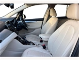 Automatic tailgate operation, BMW Teleservices, Check control system, Forward collision warning, Lights on warning, Oil temperature gauge, On board computer, Outside temperature display, Personal Profile, Service interval indicator, Speed limiter, Stop/start button, Diesel particulate filter, Drive Performance Control, Electronic differential lock, Auxiliary point for auxiliary devices, Bluetooth audio streaming, BMW professional radio/CD/MP3, DAB Digital radio, Body colour bumpers, Body colour door handles, Body colour door mirrors, Body colour roof mouldings, Chrome exhaust tailpipe, Chrome kidney grille with black vertical slats, Door mirror integrated indicators, Door sill finishers, Electric adjustable heated door mirrors, Electric front windows/one touch facility, Follow me home headlights, Front fog lights, Heat insulating tinted glass, Heated windscreen washer jets, High beam assistant, LED daytime running lights, Rain sensor including auto headlights activation, Rear wiper, Welcome lighting, 12V sockets in front centre console and passenger footwell, 3 rear headrests, 3 spoke sports leather multi-function steering wheel, 4 grab handles, 40:20:40 split folding rear bench seat, Anthracite Velour floor mats, Dual zone automatic air conditioning, Front armrest, Front cupholders x 2, Front head restraints, Front/rear armrests within door panels, Glovebox with lid, Isofix front passenger and rear seat preparation, Luggage compartment lighting, Reach + rake adjustable steering column, Rear centre armrest, Sliding rear seats, Sunvisors, Sunvisors with vanity mirrors, Extended storage pack - 2 Series Active Tourer, 3 point seatbelts on all seats, ABS, BMW emergency call, Brake assist function, Childproof rear door locks, Collision mitigation braking system, Crash Sensor - activates hazard/interior lighting + unlocks doors, Driver/Front Passenger airbags, DSC+, Dynamic Traction Control - DTC, Front and rear curtain airbags, Front passenger airbag deactivation, Front seatbelt force limiters, Front seatbelt pretensioner, Front side airbags, Hill start assist, Seatbelt warning, Side impact protection, Tyre pressure monitoring system, Warning triangle and first aid kit, Electronic immobiliser, Key integrated remote control central locking, Locking wheel bolts, Remote control Thatcham category 1 alarm, Low rolling resistance tyres,