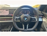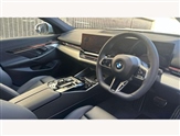 BMW ConnectedDrive online services, BMW legal emergency call, BMW Teleservices, Brake pad wear indicator, Cruise control with brake assist, Driving Assistant Plus Preparation, Front collision warning with brake intervention, Lane departure warning with active return, Left turn warning with brake function, Multifunctional instrument panel, Oil sensor for level and grade, On board computer inc. average speed, fuel consumption, liquid crystal Info display, journey computer, outside temperature display, personal profile, On-board diagnosis - OBD, PAS, Personal e-SIM, Powered by Operating System 7.0, Run flat indicator, Service interval indicator, Speed limit Info with manual speed limit assist, Stop/start button, 8 speed automatic steptronic transmission with gearshift paddles, Expert mode, Launch control, DAB tuner, Acoustic glazing, Adaptive LED Headlights, Automatic cornering lights, Automatic windscreen wipers and automatic headlight, BMW selective beam, Body colour door handles, Body coloured bumpers, Dynamic brake lights with LED technology, Electric adjustable door mirrors, Electric front and rear windows with fingertip open/close + anti-trap facility and comfort closing function, Follow me home headlight function, Headlight elements in blue, Heated windscreen washer jets, LED daytime running lights, LED third brake light, Light colour close to that of ordinary daylight, M high gloss shadow line with extended contents - Radiator grille frame, struts and strip in rear light, M light shadowline - Dark design of selected elements of the headlight and rear lights, Optimum, homogeneous illumination of the road, Rear boot, Rear side wing doors, 2 zone automatic air conditioning, 3 seat bench in 2nd row, 3 spoke leather M steering wheel in BMW M specific design with M badge, Armrest - front and rear integrated door trim, centre console includes storage compartment, rear centre includes 2 cupholders, Child seat ISOFIX attachment with rear outer seats includes top tether, Electric adjustable front sports seats, Electric adjustable steering column, Electrically adjustable lumbar support for driver and front passenger, Heated driver and front passenger seats, High-gloss black door switch cluster, power window switch and tailgate button on first and second row seat, M Anthracite headlining, M Sport pedal covers in stainless steel, Rear headrests, Single front passenger seat, Through loading system with 40/20/40 rear seat backrest split, Velour floormats, Wireless charging tray, Ambient lighting pack - 5 Series/I5, BMW Iconic glow kidney grille exterior package, Connected package professional - 5 Series/I5, Driving assistance pack - 5 Series/I5, Expanded exterior mirror package - 5 series/I5, M high gloss shadow line pack - 5 Series/ I5, M Sport exterior styling pack - 5 Series/I5, 3 rear three point seatbelts, Active protection, Airbag deployment is controlled with respect to the intensity and scope, Anti-lock braking system (ABS), Brake assist, Brake energy regeneration, Cornering brake control (CBC), Crash sensor activating central locking release, hazard warning lights, fuel cut off and interior lighting, Driver and front passenger airbags, Driver central airbag, Driver/front passenger side airbags, DSC - Dynamic Stability Control, Dynamic brake control, Dynamic Traction Control - DTC, Electromechanical parking brake with automatic drive away release and auto hold function, Electronic brake force distribution, Engine drag torque control, Front and rear brake discs with interior ventilation, Front and rear curtain airbags, Front head restraints with anti-whiplash, Head airbags for first and second row seats, Hill start assist, Locking of doors after driving off, M seat belts, Mechanical child proof lock on rear doors, PC iBrake PostCrash approach control warning with light braking function, Side impact protection, Trailer stability control, Two tone horn, Tyre pressure monitoring system, Warning triangle and first aid kit, Alarm sys
