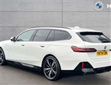 Automatic tailgate operation, BMW ConnectedDrive online services, BMW Iconic sounds electric, BMW legal emergency call, BMW Teleservices, Brake pad wear indicator, Cruise control with brake assist, Driving Assistant Plus Preparation, Front collision warning with brake intervention, Lane departure warning with active return, Left turn warning with brake function, Multifunctional instrument panel, Oil sensor for level and grade, On board computer inc. average speed, fuel consumption, liquid crystal Info display, journey computer, outside temperature display, personal profile, On-board diagnosis - OBD, PAS, Personal e-SIM, Powered by Operating System 7.0, Run flat indicator, Service interval indicator, Speed limit Info with manual speed limit assist, Stop/start button, 8 speed automatic steptronic transmission with gearshift paddles, AC charging cable professional (mode 3) for public charging, Expert mode, Launch control, DAB tuner, Acoustic glazing, Adaptive LED Headlights, Automatic cornering lights, Automatic windscreen wipers and automatic headlight, BMW selective beam, Body colour door handles, Body coloured bumpers, Dynamic brake lights with LED technology, Electric adjustable door mirrors, Electric front and rear windows with fingertip open/close + anti-trap facility and comfort closing function, Follow me home headlight function, Headlight elements in blue, Heated windscreen washer jets, LED daytime running lights, LED third brake light, Light colour close to that of ordinary daylight, M high gloss shadow line with extended contents - Radiator grille frame, struts and strip in rear light, M light shadowline - Dark design of selected elements of the headlight and rear lights, M rear spoiler, Optimum, homogeneous illumination of the road, Rear side wing doors, Rear wiper, 2 zone automatic air conditioning, 3 seat bench in 2nd row, 3 spoke leather M steering wheel in BMW M specific design with M badge, Armrest - front and rear integrated door trim, centre console includes storage compartment, rear centre includes 2 cupholders, Child seat ISOFIX attachment with rear outer seats includes top tether, Electric adjustable front sports seats, Electric adjustable steering column, Electrically adjustable lumbar support for driver and front passenger, Heated driver and front passenger seats, High-gloss black door switch cluster, power window switch and tailgate button on first and second row seat, M Anthracite headlining, M Sport pedal covers in stainless steel, Rear headrests, Single front passenger seat, Through loading system with 40/20/40 rear seat backrest split, Velour floormats, Wireless charging tray, Ambient lighting pack - 5 Series/I5, BMW Iconic glow kidney grille exterior package, Connected package professional - 5 Series/I5, Driving assistance pack - 5 Series/I5, Expanded exterior mirror package - 5 series/I5, M high gloss shadow line pack - 5 Series/ I5, M Sport exterior styling pack - 5 Series/I5, 3 rear three point seatbelts, Active protection, Airbag deployment is controlled with respect to the intensity and scope, Anti-lock braking system (ABS), Brake assist, Brake energy regeneration, Cornering brake control (CBC), Crash sensor activating central locking release, hazard warning lights, fuel cut off and interior lighting, Driver and front passenger airbags, Driver central airbag, Driver/front passenger side airbags, DSC - Dynamic Stability Control, Dynamic brake control, Dynamic Traction Control - DTC, Electromechanical parking brake with automatic drive away release and auto hold function, Electronic brake force distribution, Engine drag torque control, Front and rear brake discs with interior ventilation, Front and rear curtain airbags, Front head restraints with anti-whiplash, Head airbags for first and second row seats, Hill start assist, Locking of doors after driving off, M seat belts, Mechanical child proof lock on rear doors, PC iBrake PostCrash approach control warning with light braking function, Side imp