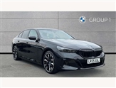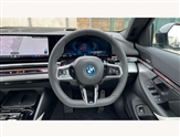 BMW ConnectedDrive online services, BMW Iconic sounds electric, BMW legal emergency call, BMW Teleservices, Brake pad wear indicator, Cruise control with brake assist, Driving Assistant Plus Preparation, Front collision warning with brake intervention, Lane departure warning with active return, Left turn warning with brake function, Multifunctional instrument panel, Oil sensor for level and grade, On board computer inc. average speed, fuel consumption, liquid crystal Info display, journey computer, outside temperature display, personal profile, On-board diagnosis - OBD, PAS, Personal e-SIM, Powered by Operating System 7.0, Run flat indicator, Service interval indicator, Speed limit Info with manual speed limit assist, Stop/start button, 8 speed automatic steptronic transmission with gearshift paddles, AC charging cable professional (mode 3) for public charging, Expert mode, Launch control, DAB tuner, Acoustic glazing, Adaptive LED Headlights, Automatic cornering lights, Automatic windscreen wipers and automatic headlight, BMW selective beam, Body colour door handles, Body coloured bumpers, Dynamic brake lights with LED technology, Electric adjustable door mirrors, Electric front and rear windows with fingertip open/close + anti-trap facility and comfort closing function, Follow me home headlight function, Headlight elements in blue, Heated windscreen washer jets, LED daytime running lights, LED third brake light, Light colour close to that of ordinary daylight, M high gloss shadow line with extended contents - Radiator grille frame, struts and strip in rear light, M light shadowline - Dark design of selected elements of the headlight and rear lights, Optimum, homogeneous illumination of the road, Rear boot, Rear side wing doors, 2 zone automatic air conditioning, 3 seat bench in 2nd row, 3 spoke leather M steering wheel in BMW M specific design with M badge, Armrest - front and rear integrated door trim, centre console includes storage compartment, rear centre includes 2 cupholders, Child seat ISOFIX attachment with rear outer seats includes top tether, Electric adjustable front sports seats, Electric adjustable steering column, Electrically adjustable lumbar support for driver and front passenger, Heated driver and front passenger seats, High-gloss black door switch cluster, power window switch and tailgate button on first and second row seat, M Anthracite headlining, M Sport pedal covers in stainless steel, Rear headrests, Single front passenger seat, Through loading system with 40/20/40 rear seat backrest split, Velour floormats, Wireless charging tray, Ambient lighting pack - 5 Series/I5, BMW Iconic glow kidney grille exterior package, Connected package professional - 5 Series/I5, Driving assistance pack - 5 Series/I5, Expanded exterior mirror package - 5 series/I5, M high gloss shadow line pack - 5 Series/ I5, M Sport exterior styling pack - 5 Series/I5, 3 rear three point seatbelts, Active protection, Airbag deployment is controlled with respect to the intensity and scope, Anti-lock braking system (ABS), Brake assist, Brake energy regeneration, Cornering brake control (CBC), Crash sensor activating central locking release, hazard warning lights, fuel cut off and interior lighting, Driver and front passenger airbags, Driver central airbag, Driver/front passenger side airbags, DSC - Dynamic Stability Control, Dynamic brake control, Dynamic Traction Control - DTC, Electromechanical parking brake with automatic drive away release and auto hold function, Electronic brake force distribution, Engine drag torque control, Front and rear brake discs with interior ventilation, Front and rear curtain airbags, Front head restraints with anti-whiplash, Head airbags for first and second row seats, Hill start assist, Locking of doors after driving off, M seat belts, Mechanical child proof lock on rear doors, PC iBrake PostCrash approach control warning with light braking function, Side impact protection, Trailer stability control, Two