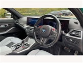 Active guard plus, Automatic start/stop system, Bluetooth functionality with Apple CarPlay/Android Auto, BMW iDrive controller on centre console, BMW legal emergency call, BMW Live Cockpit Professional sat nav system with 12.3"instrument display and high resolution control display, BMW Online services, BMW Teleservices, Brake pad wear indicator warning light, Condition based service, Connected drive services, Door/boot open warning light, Driving experience switch, Illuminated control elements, Instrument cluster with extended contents, Lights on warning, M drive buttons, Oil sensor for level and grade, warning by check control system, Oil temperature gauge, On board computer, On board diagnostics, Optimum shift indicator, Outside temperature display, Pull away assistant, Run flat indicator, Service interval indicator, Shifting point display, Speed limiter, Variable sport steering, Widescreen display, Adaptive M Sport suspension, Double joint spring strut front axle, M Drive Professional including track mode, laptimer, traction control & Drift analyser, M Sport differential, M steptronic sport transmission with drivelogic, Safety battery terminal clamp, 8 programmable favourite buttons, Auxiliary point for auxiliary devices, BMW professional radio/CD/MP3, DAB Digital radio, Harman/Kardon loudspeaker system, 3rd brake light, Acoustic glazing, Auto dimming driver's door mirror, Auto dimming rear view mirror, Automatic headlights + automatic windscreen wipers, Automatic parking function on front passenger's exterior mirror, Black chrome exhaust tailpipes, Black model designation badges, BMW emblem on engine compartment lid and tailgate, BMW high gloss shadow line with extended contents, BMW Individual shadowline lights, Body colour bumpers, Carbon fibre reinforced plastic (CFRP) roof with high gloss black roof aerial bulge and roof mouldings, Day time running light, Door mirror integrated indicators, Door sill finishers with aluminium inserts, Dynamic brake lights, Electric adjustable heated door mirrors, Electric folding door mirrors, Electric front and rear windows with one touch/convenient open/close function, Follow me home headlights, Front and rear apron plastic in body colour, Front and rear bumper system, Headlight beam throw control, Heat protection, sun protection glazing, Heated rear window with automatic switch off, Heated washer jets, High beam assistant, High gloss black frameless kidney grille with M badge, High gloss black lower bumper edges, side sills and diffuser edge binding, Illuminated bow type door handles in body colour drivers side with door lock, LED number plate light, LED tail lights with 3D L-shaped LED light design, M designation, M Sport entry door sill strips, Mirror glass aspheric on driver's side, convex on passenger side, Rear boot, Rear fog lights, Rear reflectors, Rear right M3 competition inscription, Rear side wing doors, Reversing light, Shark fin roof aerial, Strakes in front side panel, black matt/black high-gloss, with model badge, Visible VIN plate, Welcome lighting, 2 front cupholder in centre console with clamping elements and matt black inlay, 2 x 12 V Power sockets (luggage compartment and front centre console), 2 x USB Type C ports for charging and data transmission in front centre console, 3 folding rear headrests, 3 seat bench in 2nd row, Ambient inside door handle light, Ambient lighting for instrument panel, Ambient lighting for storage compartment, Ambient lighting front and rear, Ambient lighting in door panels, Anthracite headlining, Battery in luggage compartment, Carbon fibre centre console incl. cover for cupholders and storage compartment, Carbon fibre decorative steering wheel finishers, Carbon fibre shift paddles, Carbon fibre strip in instrument panel on front passenger side, Centre console armrest with storage compartment, Compartment in front of cupholder, Driver/passenger sunvisors with illuminated vanity mirrors + covers, Dynamic ambient interior lighting, Electr