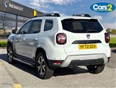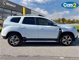 4x4 monitor with altimeter, Blind spot warning, Compass functional at 0km/h, Cruise control and speed limiter, Dacia instrument cluster, eCall emergency system, Eco mode, Electric power assisted steering, Multi view camera, On board computer, odometer, trip computer, average fuel consumption, average speed, service indicator, outside temperature gauge, Rear parking sensors and reverse camera, Rev counter, Stop/start system, 8"Media Navigation with wireless smartphone replication, Dacia plug and radio/MP3/USB/bluetooth/DAB/steering wheel control, 3 speed windscreen wipers, Acoustic windshield, Black side sills, Black/satin chrome tailgate trim with Duster inscription in black background and lettering, Body coloured door handles, Chrome front grille with hot stamping, Chrome logo surround on steering wheel, Dark glass on lateral rear windows, Dusk sensor, Electric adjustable/heated door mirrors, Electric front windows, Electric rear windows, Front and rear body coloured bumpers, Front door sill protection strip, Front fog lights, Grey quartz longitudinal roof bars with Duster inscription, Grey quartz painted door mirrors, Heated rear window, High level third rear brake light, LED automatically switched on - In main headlights, LED daytime running lights, Rain sensor, Rear side wing doors, Rear spoiler, Rear wash/wipe, Underbody protection skid plates, Y shaped LED headlights with rear LED lights, 3 rear height adjustable headrests, 3 seat bench in 2nd row, 60/40 split folding rear seat, Automatic air conditioning, Backlighted steering wheel buttons, Boot light, Driver seat lumbar adjustment, Fabric decorative insert on door panels, Fabric upholstery, Front head restraints, Front passenger reading light, Gear shift indicator, Glovebox light, Heated seats, Height adjustable driver seat, Height adjustable front and rear headrests, Height and depth adjustable steering wheel, High centre console with driver armrest, Isofix points for child seats in both outer rear seats, Map pocket on front seat backs, Passenger sunvisor with vanity mirror, Rear passenger reading light, Satin chrome gear lever cap insert, Satin chrome interior door handles, Satin chrome lower steering wheel insert, Single front passenger seat, Soft feel leather steering wheel, 3x3 point rear seatbelts, ABS and Emergency brake assist, ASR traction control with Electronic stability control, Child locks on rear doors, Door open visual and audible warning, Driver airbag, Driver and passenger seatbelt not fastened - visual and audible warning, Front passenger airbag, Front passenger airbag deactivation, Front seatbelt pretensioners, Front side airbags, Height adjustable front seatbelts, Hill start assist, Tyre pressure monitor, Keyless entry, Remote central locking, Thatcham approved engine immobiliser, Dark carbon central console surround, Matt black central console fascia, Piano black decorative insert on door panels, Satin chrome air vent surround, 17"Alloy wheels,