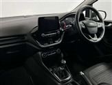 Bluetooth system, Electric power steering, Ford easy fuel, Trip computer, 2 USB ports, Auxiliary input socket, DAB Digital radio, Steering wheel mounted controls, Auto dimming rear view mirror, Automatic headlights, Body colour bumpers, Body colour door handles, Body colour electric adjustable heated door mirrors with integral indicators, Body colour rear spoiler, Chrome beltline trim, Chrome lower window surround, Cornering front fog lights, Electric front windows/one touch facility, LED Night signature to rear lights, LED rear lights, Power foldable door mirrors with puddle lights, Quickclear heated windscreen, Rain sensing wipers and auto dimming rear view mirror, Rear privacy glass, Rear wiper, Tinted glass, Upper front grille chrome surround, 12V Accessory socket in centre console, 3 spoke leather trimmed steering wheel with audio control, 60/40 split folding rear seat, Adjustable head restraints, Ambient lighting, Boot carpet, Centre console with armrest and illuminated cupholders, Chrome inner door handles, Cloth upholstery, EATC - Electronic Auto Temperature control, Footwell illumination, Front and rear velour floor mats, Front map reading lights, Front seat and rear pockets, Height adjustable driver's seat, Illuminated glovebox, Leather gear knob, Leather trimmed handbrake handle, Load area light, Luxury woven headliner, Overhead console with sunglasses holder, Pollen filter, Rake/reach adjustable steering wheel, Rear centre head restraint, Driver assistance pack - Fiesta/Titanium/Titanium X/Active B+O/Active X/ST-Line X, NCAP Pack - Fiesta, 3 point seatbelts on all rear seats, ABS+EBA, Curtain airbags, Driver and passenger airbags, Drivers knee airbag, Electronic stability control with hill start assist, Front passenger airbag deactivation, Front side airbags, Seatbelt warning, Tyre pressure monitoring system, MyKey system, Remote central locking & engine immobiliser, Thatcham Cat.1 alarm,