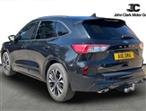 Driver impairment monitor, Ford easy fuel, Ford SYNC 3 with 8"colour touchscreen, App Link, andriod auto/apple carPlay and navigation with Ford pass connect, Front and rear parking sensors, Hands free power tailgate, Intelligent speed assist, Lane keeping aid with lane departure warning, Mobile phone wireless charging pad, Power assist steering, Selectable drive modes, Auto dimming rear view mirror, Auto headlamps with high and low beam, Auto wipers, Black roof rails, Front LED fog lights with cornering function, Full LED headlamps, Large rear spoiler, LED daytime running lights, LED rear lights, Power folding heated door mirrors with puddle lights, Power front/rear windows with global close, Power opening panoramic roof, Privacy glass, Quickclear heated windscreen, ST Line body styling kit with unique front and rear fascia and bumper, rear painted diffuser, front painted skid plates, dark mesh upper grille, ST Line front scuff plates, Twin exhausts, 10 way power adjustable drivers seat, 2nd row sliding seats, 8 way manual passenger seat including lumbar support and height adjust, Alloy pedals, Ambient lighting, Centre console with electronic parking brake, Dark headlining and pillars, Dual electronic automatic temperature control, Flat bottomed leather steering wheel in sensico with red stitching, Front and rear head restraints, Heated passenger and driver seats, Rear charging point, Sensico partial premium leather upholstery, Sports seats, ST Line front and rear floor mats, Steering wheel mounted paddle shift, B&O with large instrument cluster pack - Kuga, 3x3 point rear seatbelts, Airbags - front driver/passenger, front and rear curtain, Drivers knee airbag, Electronic stability control (ESC) and ABS, Ford MyKey Gen 2 safety system, Post collision braking, Powered child proof rear door locks, Pre collision assist with autonomous emergency braking, Red brake calipers, Tyre pressure monitoring system, Engine immobiliser, Keyless entry, Keyless start with 'Ford Power' starter button, Locking wheel nuts, Remote powered central double locking doors, Thatcham category 1 alarm,