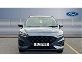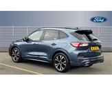 Ford easy fuel, Front and rear parking sensors, Hands free power tailgate, Lane keeping aid with lane departure warning, Mobile phone wireless charging pad, Power assist steering, Selectable drive modes, Auto headlamps with high and low beam, Day/night rear view mirror, Front LED fog lamps, Large rear spoiler, LED daytime running lights, LED rear lights, Power front/rear windows with global close, Power opening panoramic roof, Privacy glass, Quickclear heated windscreen, ST Line body styling kit with unique front and rear fascia and bumper, rear painted diffuser, front painted skid plates, dark mesh upper grille, ST Line front scuff plates, Twin exhausts, 10 way power adjustable drivers seat, 2nd row sliding seats with 60:40 split, Alloy pedals, Centre console with electronic parking brake, Dark headlining and pillars, Dual electronic automatic temperature control, Flat bottomed leather steering wheel in sensico with red stitching, Front and rear head restraints, Heated passenger and driver seats, Heated rear seats, Heated steering wheel, Rear charging point, Sensico partial premium leather upholstery, Sports seats, ST Line front and rear floor mats, ST Line gear knob, B&O with large instrument cluster pack - Kuga, 3x3 point rear seatbelts, Airbags - front driver/passenger, front and rear curtain, Drivers knee airbag, Electronic stability control (ESC) and ABS, Ford MyKey Gen 2 safety system, Manual child proof rear door locks, Post collision braking, Pre collision assist with autonomous emergency braking, Rear seat Occupancy alert, Red brake calipers, Tyre pressure monitoring system, Engine immobiliser, Keyless start with 'Ford Power' starter button, Locking wheel nuts, Remote powered central double locking doors, Thatcham category 1 alarm,