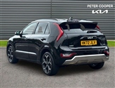 10.25"touchscreen satellite navigation, 4.2"supervision colour cluster display, Adaptive smart cruise control function (SCC) with stop and go, Apple car play/Android Auto with voice control, Blind spot collision avoidance assist, Drive mode select (Eco, sport), E-call, Emergency stop signalling system, Forward Collision-Avoidance Assist (FCA) 1.5 - City/Pedestrian/Cyclist/Junction turning, Front parking sensors, Highway Driving Assist (HDA), Kia Connect (UVO), Lane Following Assist (LFA), Lane keep assist, Motor driven power steering, Rear cross traffic alert, Rear parking sensors, Reversing camera with dynamic guide lines, Safe exit warning (SEW), Speed limit assist, Tailgate, Trip computer with distance/fuel consumption/average speed, Wireless Smartphone charger, 220v AC Inverter, 'Shark fin' mobile antenna, 2 type C USB ports on front seats, 2 USB ports in centre console including 1 type C, 6 speakers, Bluetooth with music streaming, DAB Digital radio, Steering wheel mounted controls, Acoustic windshield, All round electric windows with drivers and front passenger auto up/down and safety function, Auto dimming rear view mirror, Automatic defog system, Automatic headlight control system, Black beltline mouldings, Black grille with chrome surround, Body colour bumpers, Body colour exterior door handles, Dual LED headlights (low and high projection), Electric heated door mirrors, Electrically folding door mirrors, Front and rear chrome skid plates, Front fog lights, Heated rear window with timer, High gloss black cladding, High gloss black door mirrors, LED daytime running lights, LED rear combination lights, LED third brake light, Privacy glass - Rear windows and tailgate, Rain sensing front wipers, Rear fog lights, Rear side wing doors, Rear spoiler, Rear wiper, Roof rails, Solar glass windscreen, Welcome and follow-me home light functionality, Windscreen Washer Level Warning, 12v socket in front, 12V socket in luggage compartment, 3 seat bench in 2nd row, 60/40 split/folding 2nd row of seats, All-round height adjustable headrests, Artificial leather centre console storage box, Artificial leather steering wheel, Bulb overhead console, 2nd row and luggage lamp, Centre console cupholder, Chrome coating interior door handles, Cloth / Artificial leather upholstery, Driver's power adjustable seat, Driver/passenger sunvisors with illuminated vanity mirrors, Drivers seat power lumbar support, Dual zone automatic air conditioning, Front and rear door storage, Heated front seats, Heated steering wheel, Illuminated glovebox, Interior door lock/unlock function, ISOFIX Child seat top tethers and anchor fixings, Luggage area load cover, Luggage board, Paddle shifts, Passenger seat height adjuster, Rear armrest, Seatback pocket - driver, Seatback pocket - front passenger, Shift by wire SBW, Single front passenger seat, Tilt/telescopic adjustable steering wheel, Ventiliation ducts to rear compartment, Towing pack - Niro, 3 point seatbelts on all seats, ABS, Automatic unlocking of doors in case of impact, Centre side front airbags, Curtain and side airbags, Drivers knee airbag, Dual shell horn, Electric parking brake with auto hold function, Electronic stability control, Front passenger airbag deactivation, Height adjustable front seatbelts, Hill start assist control (HAC), Manual rear child locks, Rear seat alert system, Traction control, Tyre pressure monitoring system, Alarm system and engine immobiliser, Deadlocks, Engine Start/Stop Button with Smart Entry System, Locking wheel nuts, Visible vehicle identification number, Warranty - 7 Years/ 100,000 miles, Centre fascia chopped carbon, 18"Alloy wheels, Tyre mobility kit,