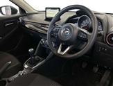 Adjustable speed limiter, Analogue speed display meter, Cruise control, Digital instrument cluster, Digital rev counter, E-call, Emergency stop signalling system, Engine start/stop button, Integrated bluetooth, Lane departure warning system, Lane keep assist, Mazda connect with 8"colour touch screen, Navigation system, PAS, Rear parking sensor with audible and visual warning, Reversing camera, Service indicator, Tailgate, Trip computer, Wireless Apple CarPlay and wired Android Auto, i-stop, Mazda M hybrid, AM/FM/DAB radio with 6 speakers with USB and AUX inputs, Multimedia Commander including separate volume dial, Steering wheel mounted audio/bluetooth controls, Auto dimming rear view mirror, Auto headlight levelling, Black door mirrors, Black Shark-fin antenna, Body coloured front bumper with black lower bezel, Body coloured rear bumper with black lower mouldings and red accent, Coming/leaving home lighting function, Dusk sensing headlights, Electric adjustable/heated/folding door mirrors, Electric front/rear windows with one touch auto up/down for driver's window, Front honeycomb grill with red accent, Gloss black finish signature wing, Halogen daytime running lights, Heated rear window, LED Headlights, LED indicator lights, LED third brake light, Rain sensing front wipers with adjustable sensitivity and speed, Rear side wing doors, Rear wiper, 3 seat bench in 2nd row, 60/40 split rear seats, Black/red air vent accents, Climate control air conditioning, Driver, Front passenger and two rear grab handles with coathooks, Drivers seat manual slide recline and height adjustment, Drivers/front passengers covered vanity mirrors and drivers ticket holder, Front centre storage with two cupholders, Front head restraints, Front passenger and driver door pockets, Front passenger seat manual slide, recline and height adjust, Front passenger seatback pockets, Gear shift indicator, Glovebox, Interior courtesy light with integrated spotlight, ISOFIX child seat anchorage points attached on outer rear seats, Leather handbrake, Leather steering wheel and gear knob, Luggage compartment light, Premium cloth upholstery, Single front passenger seat, Three height adjustable rear head restraints, Tilt/telescopic adjustable steering wheel, 2x3 point front seatbelts with pre-tensioners, 3 point seatbelts on all rear seats, Anti-lock braking system (ABS), Collision mitigation braking system, Dynamic stability control + Traction control, ESP, Front and rear curtain airbags, Front driver, passenger and rear seat seatbelt warning, Front dual stage driver and single stage front passenger airbags, Front side airbags, Front smart city brake support, G-Vectoring control plus, Hill launch assist, Manual child lock in rear doors, Passenger airbag cut-off switch, Tyre pressure monitoring system, Deadlocking system, Power door locks, Remote central locking, Thatcham accredited alarm and immobiliser, Gloss black dashboard interior colour coordination, 16"Black metallic machined alloy wheels, Emergency tyre repair kit,