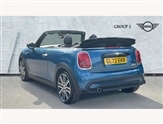Apple CarPlay, Automatic start/stop function with brake energy recuperation, Compatible mobile phone bluetooth with audio streaming, Cruise control with brake assist, Electro-mechanical speed dependant steering assistance, Instrument cluster, MINI Driving Modes - centre toggle switch to control driving setting (sport, mid and green), Mini E-call, MINI TeleServices, On board computer, Rear park distance control, Service interval indicator, Double Vanos system, Fully variable valve control, High precision injection, Performance Control, Steptronic transmission with double clutch, 8.8"touchscreen with LED ring, FM tuner and DAB digital radio, Automatic headlight activation switch, Body colour fuel filler cap, Dynamic brake lights, Electric windows, Fully electric black softtop with integrated sunroof functionality, Heated rear window, Heated windscreen washer jets, LED headlight with closed ring and daytime driving lights, Left exhaust tailpipe with chrome finisher, Metal door sill strips with MINI imprint, Model logo Cooper on right of tailgate, Radiator grille bars, tailgate handle, lower front grille grating, rear central fog light in chrome, Rain sensor window wipers, Rear boot, Rear fog lights, Rear LED lights with union jack design, Side scuttle panel with integrated indicator, Sun/heat protection glass, Third brake light, White indicator lenses, 12V Accessory socket in centre console, 2 seat bench in 2nd row, 4 lashing eyes in luggage compartment, 50/50 split folding rear seats, Chrome interior highlights, Colour line - Carbon black, Cupholders, Easy Load boot handles, Front and rear head restraints, Front and rear isofix with front passenger airbag deactivation, Glove compartment, Height and length steering column adjustment, Interior lighting with 12 different colours running across the dashboard, underneath door bezel illuminated laser engraved design on central display, Leather gearshift lever and handbrake gaiters, LED reading lights, vanity mirror lights, front foot well light and spotlight on front seats, Manual air conditioning, Mechanical seat adjustment, driver seat height adjust, forward/back and front seats backrest, MINI Yours walk nappa leather steering wheel with grey seam and MINI Yours badge on piano black lower steering wheel spoke, Multifunction steering wheel, Single front passenger seat, Sports steering wheel, Storage compartments in doors, Sunvisors with vanity mirrors, Tool kit, Velour floor mats, Convertible pack with comfort access - Mini Convertible, 3 point seatbelts on all four seats, 6 Airbags - front, side and seat belt tensioners, Active rollover protection, Anti-lock braking system (ABS), DSC - Dynamic Stability Control, Front and rear disc brakes, Hill start assist, Single tone fanfare horn, Tyre pressure monitoring system, Alarm system with tilt sensor, monitoring doors, bonnet interior and tailgate, Electronic vehicle immobiliser, Keyless Go,