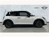 Central toggle bar, Circular OLED Screen, Compatible mobile phone bluetooth with audio streaming, Cruise control, Digital instrument cluster, Electro-mechanical speed dependant steering assistance, Emergency call service, MINI Experience Modes, Mini navigation system, On board computer, Service interval indicator, Tailgate, 7 speed steptronic transmission with double clutch, DAB Digital radio, Personal eSim, Adaptable light signatures, Auto headlights, Electric adjustable heated door mirrors, Electric front windows, Heated rear window, Heated windscreen washer jets, LED 3rd brake light, LED daytime running lights, LED indicator lights, LED rear lights, Logos in Vibrant Silver, Rain sensor window wipers, Rear fog lights, Rear window wiper, Vibrant silver grille surround, 2 seat bench in second row, 2 zone automatic air conditioning, 60/40 rear seat bench, Ambient lighting, Cupholders, Dark headliner, Front and rear head restraints, Front compact armrest, Front floor mats, Heated steering wheel, Height adjustable passenger seat, Lidded storage box in grey knit, Luggage compartment lighting, Single front passenger seat, Sport Vescin Steering Wheel black with vibrant silver accents, Sunvisors with vanity mirrors, Vescin synthetic leather upholstery includes dash knit in beige with grey accents, Driving assistant pack - Cooper Hatchback, Level 1 pack - Mini Hatchback, Park assistant pack - Cooper Hatchback, 3 point seatbelts on all four seats, 6 Airbags - front, side, head and seat belt tensioners, Anti-lock braking system (ABS), DSC - Dynamic Stability Control, Electronic parking brake, Front and rear disc brakes, Front ISOFIX (iSize), Front passenger airbag deactivation, Traction control, Tyre pressure monitoring system, Alarm, Immobiliser, Remote central locking, Blue decorative dash strap, Tyre repair kit,