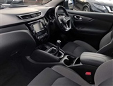 Advanced drive assist display 5'' TFT coloured screen, Android Auto, Apple CarPlay preparation, Bluetooth connectivity, Electric speed sensitive power steering, Front parking sensors, Intelligent around view monitor, Intelligent parking assist, Lane departure warning system, Nissan connect evo 7"touchscreen navigation and entertainment system, Normal or sport selectable steering, Outside temperature sensor, Push button starter, Rear parking sensors, Rear view camera, Service interval indicator, Smartphone integration, Stop/start system, Tomtom connected services, Traffic sign recognition, Trip computer, Voice control system, 6 speakers, AM/FM radio, CD audio system, Aux-in socket, DAB Digital radio, Steering wheel mounted audio controls, USB port, Anti dazzle rear view mirror, Auto wipers, Body colour bumpers, Body coloured door handles, Body coloured door mirrors, Chrome window surround, Daytime running lights dip function when turn signal applied, Electric folding door mirrors, Electric front and rear windows with one touch illuminated window controls, Electric front/rear windows, Electrically adjustable door mirrors, Front fog lights, Heated door mirrors, High beam assist, Intelligent auto headlights, LED indicators in door mirrors, Matt silver roof rails, One touch 4x auto windows with illuminated switches, Privacy glass, Rear roof spoiler, Rear wiper with reverse link, Shark fin antenna, Underbody vortex generators, 2 X front 12v power sockets, 3 height adjustable rear headrests, 60/40 split folding rear seat, Ambient lighting, Ambient lighting in centre console, Boot lighting, Centre console storage box/armrest, Chrome interior door handles, Cloth upholstery, Configurable luggage board system, Driver's seat manual height adjust, Dual zone climate control, Front and rear door pockets with bottle holders, Front and rear seat belt pre-tensioners with load limiters, Height adjustable front headrests, ISOFIX restraints on outer rear seats x2, Leather D shaped steering wheel, Leather gear lever, Leather knee pad, Manual height adjustable front passenger seat, Manual lumbar support on driver seat, Manual lumbar support on passenger seat, Monoform front seats with plastic backboard, Parcel shelf stow function under luggage board, Pollen filter, Rear armrest with 2 cupholders, Synthetic leather wrapped door handle with contrasting stitching, Tilt/telescopic adjustable steering wheel, Safety shield plus pack - Qashqai, 6 airbags - Driver, front passenger, curtain and side airbags, ABS, ESP, EBD and brake assist, Auto hold function, Child locks on rear doors, Electronic parking brake, Front and rear seat belt warning, Front passenger airbag deactivation, Height adjustable front seatbelts, Hill start assist, Intelligent emergency braking with pedestrian recognition, Three 3 point rear seatbelts, Tyre pressure monitoring system, Anti-theft immobiliser, Intelligent Key, Remote central locking, Thatcham Cat.1 alarm, Carbon graphite dash trim, Tyre puncture repair kit,