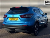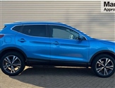 360 degree Intelligent around view monitor, Advanced drive assist display 5'' TFT coloured screen, Apple car play/Android Auto, Bluetooth connectivity, Cruise control + speed limiter, Electric speed sensitive power steering, Front parking sensors, Idle stop/start system, Intelligent park assist, Lane departure warning system, Nissan connect evo 7"touchscreen navigation and entertainment system, Normal or sport selectable steering, Outside temperature sensor, Premium Tomtom connected services, Push button starter, Rear parking sensors, Service interval indicator, Smartphone integration, Traffic sign recognition, Trip computer, Voice control system, Nissan chassis control (intelligent ride control, intelligent trace control), 6 speakers, AM/FM radio, CD audio system, Aux-in socket, DAB Digital radio, Steering wheel mounted audio controls, USB port, Anti dazzle rear view mirror, Auto wipers, Body colour bumpers, Body coloured door handles, Body coloured door mirrors, Chrome window surround, Daytime running lights dip function when turn signal applied, Electric folding door mirrors, Electric front and rear windows with one touch illuminated window controls, Electrically adjustable door mirrors, Front fog lights, Halogen headlights, Heated door mirrors, High beam assist, Intelligent auto headlights, LED indicators in door mirrors, Matt silver roof rails, Privacy glass, Rear roof spoiler, Rear wiper with reverse link, Shark fin antenna, Signature LED daytime running lights, Silver rear styling plate, Underbody vortex generators, 2 X front 12v power sockets, 3 height adjustable rear headrests, 60/40 split folding rear seat, Ambient interior lighting, Ambient lighting around centre console, Bi-colour cloth upholstery, Boot lighting, Centre console storage box/armrest, Chrome interior door handles, Driver's seat manual height adjust, Dual zone climate control, Front and rear door pockets with bottle holders, Front and rear seat belt pre-tensioners with load limiters, Height adjustable front headrests, ISOFIX restraints on outer rear seats x2, Leather D shaped steering wheel, Leather gear lever, Leather knee pad, Luggage board system, Manual height adjustable passenger seat, Manual lumbar support on driver seat, Manual lumbar support on passenger seat, Monoform front sport seats with plastic backboard, Parcel shelf stow function under luggage board, Pollen filter, Rear armrest with 2 cupholders, Synthetic leather wrapped door handle with contrasting stitching, Tilt/telescopic adjustable steering wheel, Velour floor mats, Glass roof pack - Qashqai, 6 airbags - Driver, front passenger, curtain and side airbags, ABS, ESP, EBD and brake assist, Auto hold function, Child locks on rear doors, Electronic parking brake, Front and rear seat belt warning, Height adjustable front seatbelts, Hill start assist, Intelligent emergency braking with pedestrian recognition, Passenger airbag deactivation system, Three 3 point rear seatbelts, Tyre pressure monitoring system, Anti-theft immobiliser, Intelligent Key, Remote central locking, Thatcham Cat.1 alarm, Carbon graphite dash trim, 18"Two tone alloy wheels,