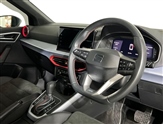 PERFORATED LEATHER FLAT-BOTTOMED STEERING WHEEL WITH RED STITCHING AND FR LOGO WITH LEATHER GEAR KNOB AND HANDBRAKE,