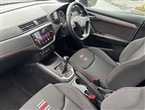 'Lights On' Reminder warning buzzer, Cruise control and speed limiter, Digital clock, Electric speed sensitive power steering, Full Link Smartphone Integration with Mirror Link, Apple Car Play, Google Android Auto with USB cable for Apple and Android compatibility, Low fuel warning light, Outside temperature display, Rear parking sensor, RPM counter, Seat connect with safety, service, remote and online, SEAT Drive profile with dynamic chassis control - Four different models normal-sport-eco-individual, steering response, throttle response, Trip computer, Sports suspension, 6 speakers, Bluetooth interface for hands free and audio streaming, DAB digital radio and AM/FM radio, Steering wheel mounted audio controls, Anti theft roof antenna, Auto dimming interior rear view mirror, Automatic activation of hazard warning lights, Automatic headlights, Body coloured bumpers, Body coloured door handle inserts, Chrome front grille frame, Chrome roof rails, Chrome window trim, Coming/leaving home lighting function, Dark tinted rear windows, Electric front/rear windows with one touch/auto up/down, Electrically adjustable, heated and folding door mirrors, Full LED headlights dipped and mainbeam + front and rear fog lights, LED daytime running lights, LED rear tail lights and licence plate lights, Protective side mouldings, Rain sensing wipers, Rear window wash/wipe, Roof colour door mirrors, Twin exhaust pipe styling hidden exhaust pipe, Visible VIN plate, Windshield wiper with intermittent control and potentiometer, 2 cupholders, 60/40 split folding rear seat, Aircare filter, Black interior roof, Double boot floor, Driver sunvisor with covered mirror + card holder, Dual zone climate control, Front courtesy light with front reading lights, Front sport seats, Gear shift indicator, Heated front seats, Height adjustable front seats, Height/reach adjustable steering column, Illuminated boot, Instrument lighting with brightness control, Interior light in footwell, central console and door panel, ISOFIX points in outer rear seats with top tether anchorage points, Multi-colour ambient interior lighting, Nora cloth upholstery, Passenger sunvisor with vanity mirror, Perforated flat bottomed leather steering wheel/gear knob/handbrake with red stitching and FR logo, Two front and three rear height adjustable headrests, Connectivity pack plus - Arona, Interior chrome pack - Arona, 3 point seatbelts on all rear seats, ABS, Active front headrests, Child locks on rear doors, Driver and front passenger airbags with front passenger airbag de activation, front side and curtain airbags, Electronic stability control, Emergency Brake Assist (EBA) and front assist, Front and rear seatbelt reminder, Hill hold control, Multi-Collision braking, Red brake calipers, Seatbelts with red stripe, Tiredness recognition system, Traction control, Tyre pressure monitoring system, 2 folding remote keys with window open/close function, Alarm with back-up horn, Electronic engine immobiliser, Locking wheel bolts, Remote central locking + deadlocks, Tow away protection, Interior chrome line trim, Leatherette dashboard, 18"Performance alloy wheels,