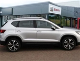 Cruise control system with speed limiter, E-call, Outside temperature gauge, PAS, SEAT drive profile with driving experience button - Normal, Sport, Eco and Individual mode, steering and throttle response, Self parking functionality (includes front and rear parking sensors), Trip computer, Wireless full link smartphone integration, Wireless phone charger, Steering wheel mounted audio/phone controls, Black wheel arch surrounds, Body colour bumpers, Chrome front grille frame, Chrome roof rails, Chrome side window trim, Daytime running lights, Door mirrors with welcome light silhouette, Dynamic headlight range control with self adjusting whilst driving, Electric adjustable/heated/folding door mirrors, Front and rear electric windows, Full LED headlamps with lens and LED front fog lamps with cornering function, LED rear tail lights with dynamic indicators, Rear fog lights, Rear side wing doors, Rear wash/wipe, Simulated exhaust pipes, Third brake light, 12v socket in front, 3 seat bench in 2nd row, 60/40 split folding rear seat, Cloth upholstery with front comfort seats, Dual zone climate control, Front and rear head restraints, Front centre armrest, Front seat back storage pockets, Height adjustable driver and passenger seat with lumbar adjustment, ISOFIX points in outer rear seats with top tether anchorage points, Leather steering wheel and gear knob, Rear armrest and easy back seat release mechanism from boot, Single front passenger seat, Storage compartment under driver's seat, Interior lighting pack - Ateca, Navigation system pack with DAB - Ateca, 3x3 point rear seatbelts, ABS, Traction control system (TCS), Electronic stability control (ESC) and Electronic differential lock system (XDS), Airbags - Driver and front passenger airbag with deactivation, front side, two curtain and driver's knee airbags, Electric parking brake with auto hold function, Front and rear seatbelt reminder, Front assist with autonomous emergency braking, Hill hold control, Manual rear child locks, Tiredness recognition system, Traction control, Tyre pressure monitoring system, Alarm, Keyless entry, Locking wheel bolts, Chrome interior detailing, 18"Performance machined alloy wheels 36/2 in nuclear grey,