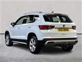 Outside temperature gauge, Progressive power assisted steering, Rear view camera, SEAT drive profile with driving experience button - Normal, Sport, Eco and Individual mode, gearshift, steering and throttle response, Self parking functionality (includes front and rear parking sensors), Trip computer, Wireless full link smartphone integration, Wireless phone charger, Steering wheel mounted audio/phone controls, Black simulated exhaust pipes, Body colour bumpers, Body coloured wheel arch surrounds, Chrome front grille frame, Chrome roof rails, Chrome side window trim, Dark tinted rear windows, Daytime running lights, Door mirrors with welcome light silhouette, Dynamic headlight range control with self adjusting whilst driving, Electric adjustable/heated/folding door mirrors, Front and rear electric windows, Front grille hot stamping, Full LED headlamps with lens and LED front fog lamps with cornering function, Illuminated aluminium front door sill, LED rear tail lights with dynamic indicators, Rear fog lights, Rear wash/wipe, Reflex silver side mouldings, 12v socket in front, 60/40 split folding rear seat, Dual zone climate control, Front and rear head restraints, Front centre armrest, Front seat back storage pockets, Height adjustable driver and passenger seat with lumbar adjustment, ISOFIX points in outer rear seats with top tether anchorage points, Leather steering wheel and gear knob, Microsuede upholstery with front comfort seats, Rear armrest and easy back seat release mechanism from boot, Steering wheel mounted gearshift paddles, Storage compartment under driver's seat, Convenience pack - Ateca, Interior lighting pack - Ateca, Navigation system pack with DAB - Ateca, Safe and driving pack - Ateca, 3x3 point rear seatbelts, ABS, Traction control system (TCS), Electronic stability control (ESC) and Electronic differential lock system (XDS), Airbags - Driver and front passenger airbag with deactivation, front side, two curtain and driver's knee airbags, Electric parking brake with auto hold function, Front and rear seatbelt reminder, Hill hold control, Tiredness recognition system, Traction control, Tyre pressure monitoring system, Alarm, Keyless entry, Locking wheel bolts, Chrome interior detailing, 18"Brillaint silver alloy wheels,