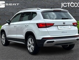 8"Digital cockpit, Colour multi-function on board computer display, E-call, Electric tailgate, Outside temperature gauge, Progressive power assisted steering, Rear view camera, SEAT drive profile with driving experience button - Normal, Sport, Eco and Individual mode, gearshift, steering and throttle response, Self parking functionality (includes front and rear parking sensors), Start/stop system, Trip computer, wired and wireless full link smartphone integration, Wireless phone charger, Steering wheel mounted audio/phone controls, Black wheel arch surrounds, Body colour bumpers, Chrome front grille frame, Chrome roof rails, Chrome side window trim, Dark tinted rear windows, Daytime running lights, Door mirrors with welcome light silhouette, Dynamic headlight range control with self adjusting whilst driving, Electric adjustable/heated/folding door mirrors, Front and rear electric windows, Front grille hot stamping, Full LED headlamps with lens and LED front fog lamps with cornering function, Heat reflecting windscreen, Illuminated aluminium front door sill, LED 3rd brake light, LED rear tail lights with dynamic indicators, Rear exhaust tailpipe, Rear fog lights, Rear side wing doors, Rear wash/wipe, Reflex silver side mouldings, Variable front intermittent wipers, 12v socket in front, 3 seat bench in 2nd row, 60/40 split folding rear seat, Dinamica upholstery with front comfort seats, Drawer under right front seat, Dual zone climate control, Front and rear head restraints, Front centre armrest, Front seat back storage pockets, Height adjustable driver and passenger seat with lumbar adjustment, ISOFIX points in outer rear seats with top tether anchorage points, Leather sports steering wheel and gear knob, Rear armrest and easy back seat release mechanism from boot, Single front passenger seat, Steering wheel mounted gearshift paddles, Convenience pack - Ateca, Interior lighting pack - Ateca, Navigation system pack with DAB - Ateca, Safety and driving pack (M) - Ateca, Safety and driving pack with attention and drowsiness assist - Ateca, 3x3 point rear seatbelts, ABS, Traction control system (TCS), Electronic stability control (ESC) and Electronic differential lock system (XDS), Airbags - Driver and front passenger airbag with deactivation, front side, two curtain and driver's knee airbags, Electric parking brake with auto hold function, Front and rear seatbelt reminder, Hill hold control, Manual rear child locks, Single tone horn, Tiredness recognition system, Tyre pressure monitoring system, Alarm, Keyless entry, Locking wheel bolts, Remote central locking, Chrome interior detailing, 18"Brillaint silver alloy wheels,
