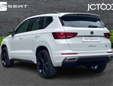 10"Digital cockpit, Cruise control system with speed limiter, E-call, Electric tailgate with virtual pedal, Outside temperature gauge, Progressive power assisted steering, Rear view camera, SEAT drive profile with driving experience button - Normal, Sport, Eco and Individual mode, steering and throttle response, Self parking functionality (includes front and rear parking sensors), Start/stop system, Trip computer, Wireless full link smartphone integration, Wireless phone charger, Beats audio system, Steering wheel mounted audio/phone controls, Black roof rails, Black side window trim, Body colour bumpers, Body coloured wheel arch surrounds, Chrome front grille frame, Dark tinted rear windows, Daytime running lights, Door mirrors with welcome light silhouette, Dynamic headlight range control with self adjusting whilst driving, Electric adjustable/heated/folding door mirrors, Front and rear electric windows, Full LED headlamps with lens and LED front fog lamps with cornering function, Illuminated aluminium front door sill, LED rear tail lights with dynamic indicators, Rear exhaust tailpipe, Rear fog lights, Rear side wing doors, Rear wash/wipe, Roof spoiler, Third brake light, Variable front intermittent wipers, 12v socket in front, 3 seat bench in 2nd row, 60/40 split folding rear seat, Aluminium pedals, Driver seat memory function, Dual zone climate control, Electric adjustable driver seat with lumbar adjustment, Front and rear head restraints, Front centre armrest, Front seat back storage pockets, Heated front seats, Height adjustable passenger seats with lumbar adjustment, ISOFIX points in outer rear seats with top tether anchorage points, Leather sports steering wheel and gear knob, Leather upholstery with front comfort seats, Multicoloured ambient lighting with LED interior illumination, Rear armrest and easy back seat release mechanism from boot, Single front passenger seat, Storage compartment in roof console for sunglass, Convenience pack - Ateca, Interior lighting pack - Ateca, Navigation system pack with DAB - Ateca, 3x3 point rear seatbelts, ABS, Traction control system (TCS), Electronic stability control (ESC) and Electronic differential lock system (XDS), Airbags - Driver and front passenger airbag with deactivation, front side, two curtain and driver's knee airbags, Electric parking brake with auto hold function, Front and rear seatbelt reminder, Front assist with autonomous emergency braking, Hill hold control, Manual rear child locks, Single tone horn, Tiredness recognition system, Tyre pressure monitoring system, Alarm, Keyless entry, Locking wheel bolts, Remote central locking, Chrome interior detailing, 19"Exclusive alloy wheels 36/10 in glossy black, Emergency spare wheel,