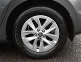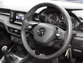 Bluetooth connection, Driver alert system - DAS, Electromechanical power steering, Exterior temperature gauge, Lane assist including road edge detection, Multifunction trip computer in black and white, Rear parking sensors, Service interval indicator, Speed limiter, 2x USB-C in the front (for data transmission and charging), 4 speakers in front, Auxiliary socket for external MP3 player, DAB digital radio reception, Radio Swing with 6.5"colour display, Basic LED Headlights, Basic rear lights, Body colour door mirrors, Body coloured bumpers, Dimming rear view mirror with black frame, Door mirror integrated indicators, Electrically adjustable and heated door mirrors, Electrically adjustable front windows with function auto up/down, Front fog lights, Front window wiper intermittent control, Headlight range control - Automatic, Ice scraper in fuel cap, LED daytime running lights with coming and leaving home feature, Mechanical adjustable rear windows, Rain sensor, Rear LED fog light, Rear side wing doors, Rear window wiper with washing nozzles, Roof mounted spoiler, SKODA tailgate lettering in chrome, Third brake light, 2 reading lights in front and 2 reading lights in rear, 2 spoke leather multifunction steering wheel, 3 rear headrests, Backrest split and folding, Central console with fixed cup holder and storage box, Chrome handbrake release button, Fabric upholstery, Gearshift knob/handle in leather, Grain satin black interior door handles, Hand brake lever handle in leather, Height adjustable front headrests, Height adjustable front seats, Height adjustable steering wheel, ISOFIX and TopTether anchorage points to the outer rear seats, ISOFIX and TopTether on the front passenger seat, Luggage compartment lighting, Manual air conditioning, Manually adjustable lumbar support in front seats, Pollen filter, Rear seat bench unsplit, Single front passenger seat, Storm grey headlining, Sun visors with mirror and airbag label on passenger side, Ticket holder, 3-point height adjustable front seats belts with pretensioner and force limiter, Automatic warning lights in case of crash, Driver and passengers airbag with switch off function, e-Call+, ESC including ABS, MSR, ASR, EDS, HBA and XDS, Front and rear seat belt warning, FRONT ASSIST (AEB City and AEB Inter Urban), Front side airbags, Head airbags, One tone horn, Pedestrian protection, Three rear 3-points safety seat belts with pretensioner and force limiter including stop function for outer rear seat belts, Tyre pressure monitoring system, Anti-theft alarm system including immobiliser, interior monitoring, backup horn, and towing protection, Central locking with radio remote control, interior controls, SAFE function and 2 foldable keys, Black painted air vents, Glossy black decorative trim, Grain satin black central console cover, Grain satin black lower decorative trim, Satin black door and side trim panel in front, Anti-theft wheel bolts protection, Super-low rolling resistance tyres,