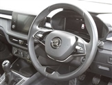 Bluetooth connection, Driver alert system - DAS, Electromechanical power steering, Exterior temperature gauge, Lane assist including road edge detection, Service interval indicator, Virtual cockpit with 10.25"colour display, 2x USB-C in the front (for data transmission and charging), 6 Speakers (4 in front and 2 in rear), Auxiliary socket for external MP3 player, Bolero radio with 8"colour display, DAB digital radio reception, Basic LED Headlights, Body coloured bumpers, Dimming rear view mirror with black frame, Door mirror integrated indicators, Electrically adjustable and heated door mirrors, Electrically adjustable front windows with function auto up/down, Front fog lights, Front window wiper intermittent control, Headlight range control - Automatic, Ice scraper in fuel cap, LED daytime running lights with coming and leaving home feature, Mechanical adjustable rear windows, Privacy glass, Rain sensor, Rear LED fog light, Rear side wing doors, Rear window wiper with washing nozzles, Roof mounted spoiler, SKODA tailgate lettering in chrome, Third brake light, 2 reading lights in front and 2 reading lights in rear, 3 rear headrests, Backrest split and folding, Central console with fixed cup holder and storage box, Chrome handbrake release button, Fabric upholstery, Gearshift knob/handle in leather, Grain satin black interior door handles, Hand brake lever handle in leather, Height adjustable drivers seat, Height adjustable front headrests, Height adjustable steering wheel, ISOFIX and TopTether anchorage points to the outer rear seats, ISOFIX and TopTether on the front passenger seat, Luggage compartment lighting, Pollen filter, Rear seat bench unsplit, Single front passenger seat, Storm grey headlining, Sun visors with mirror and airbag label on passenger side, Ticket holder, Umbrella in drivers door, 3-point height adjustable front seats belts with pretensioner and force limiter, Automatic warning lights in case of crash, Driver and passengers airbag with switch off function, e-Call+, ESC including ABS, MSR, ASR, EDS, HBA and XDS, Front and rear seat belt warning, FRONT ASSIST (AEB City and AEB Inter Urban), Front side airbags, Head airbags, One tone horn, Pedestrian protection, Three rear 3-points safety seat belts with pretensioner and force limiter including stop function for outer rear seat belts, Tyre pressure monitoring system, Anti-theft alarm system including immobiliser, interior monitoring, backup horn, and towing protection, Central locking with radio remote control, interior controls, SAFE function and 2 foldable keys, KESSY - Keyless engine start/stop, Anodized cross line upper decorative trim, Colour Edition air vents, Grain satin black central console cover, Grain satin black lower decorative trim, Satin black door and side trim panel in front, Anti-theft wheel bolts protection, Super-low rolling resistance tyres,