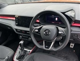 Advanced driver attention and drowsiness monitor, Bluetooth connection, Electromechanical power steering, Exterior temperature gauge, Service interval indicator, Traffic sign recognition, Virtual cockpit with 10.25"colour display, Wireless SmartLink for Apple CarPlay and Android Auto, 6 Speakers (4 in front and 2 in rear), Auxiliary socket for external MP3 player, DAB digital radio reception, Auto dimming rear view mirror, Black radiator grille, Body coloured bumpers, Door mirror integrated indicators, Front and rear electric windows, Front window wiper intermittent control, Headlight range control - Automatic, Ice scraper in fuel cap, LED daytime running lights with coming and leaving home feature, LED rear lights, Monte Carlo badging, Privacy glass, Rear LED fog light, Rear side wing doors, Rear window wiper with washing nozzles, Roof mounted spoiler, SKODA tailgate lettering in black, Sports bumpers, Third brake light, 2 reading lights in front and 2 reading lights in rear, 3 rear headrests, Aluminium pedals, Backrest split and folding, Black headlining, Central console with removable cup holder and storage box, Chrome handbrake release button, Door sills with fabia badging, Dual zone air conditioning with climatronic electronic control, Fabric/artificial leather upholstery, Front centre armrest, Front sports seats, Gearshift knob/handle in leather, Hand brake lever handle in leather, Height adjustable front headrests, Height adjustable front seats, Height adjustable steering wheel, ISOFIX and TopTether anchorage points to the outer rear seats, ISOFIX and TopTether on the front passenger seat, Luggage compartment lighting, Manually adjustable lumbar support in front seats, Metallic painted red central console cover, Metallic red interior door handles, Pollen filter, Rear seat bench unsplit, Single front passenger seat, Sun visors with mirror and airbag label on passenger side, Textile floor mats, Ticket holder, Umbrella in drivers door, 3-point height adjustable front seats belts with pretensioner and force limiter, Automatic warning lights in case of crash, Driver and passengers airbag with switch off function, e-Call+, ESC including ABS, MSR, ASR, EDS, HBA and XDS, Front and rear seat belt warning, FRONT ASSIST (AEB City and AEB Inter Urban), Front side airbags, Head airbags, Hill hold control, One tone horn, Pedestrian protection, Three rear 3-points safety seat belts with pretensioner and force limiter including stop function for outer rear seat belts, Tyre pressure monitoring system, Anti-theft alarm system including immobiliser, interior monitoring, backup horn, and towing protection, Central locking with radio remote control, interior controls, SAFE function and 2 foldable keys, Carbon effect door and side trim panels, Carbon effect lower decorative trim with white stitching, Monte carlo air vents, Red metallic upper decorative trim, Anti-theft wheel bolts protection, Super-low rolling resistance tyres,