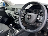 Bluetooth connection, Driver alert system - DAS, Electromechanical power steering, Exterior temperature gauge, Lane assist including road edge detection, Multifunction trip computer in black and white, Service interval indicator, SmartLink, Speed limiter, 2x USB-C in the front (for data transmission and charging), 4 speakers in front, Auxiliary socket for external MP3 player, DAB digital radio reception, Radio Swing with 6.5"colour display, Basic LED Headlights, Basic rear lights, Body colour door mirrors, Body coloured bumpers, Dimming rear view mirror with black frame, Door mirror integrated indicators, Electrically adjustable and heated door mirrors, Electrically adjustable front windows with function auto up/down, Front fog lights, Front window wiper intermittent control, Headlight range control - Automatic, Ice scraper in fuel cap, LED daytime running lights with coming and leaving home feature, Mechanical adjustable rear windows, Rain sensor, Rear LED fog light, Rear side wing doors, Rear window wiper with washing nozzles, Roof mounted spoiler, SKODA tailgate lettering in chrome, Third brake light, 2 reading lights in front and 2 reading lights in rear, 2 spoke leather multifunction steering wheel, 3 rear headrests, Backrest split and folding, Central console with fixed cup holder and storage box, Chrome handbrake release button, Fabric upholstery, Gearshift knob/handle in leather, Grain satin black interior door handles, Hand brake lever handle in leather, Height adjustable front headrests, Height adjustable front seats, Height adjustable steering wheel, ISOFIX and TopTether anchorage points to the outer rear seats, ISOFIX and TopTether on the front passenger seat, Luggage compartment lighting, Manual air conditioning, Manually adjustable lumbar support in front seats, Pollen filter, Rear seat bench unsplit, Single front passenger seat, Storm grey headlining, Sun visors with mirror and airbag label on passenger side, Ticket holder, 3-point height adjustable front seats belts with pretensioner and force limiter, Automatic warning lights in case of crash, Driver and passengers airbag with switch off function, e-Call+, ESC including ABS, MSR, ASR, EDS, HBA and XDS, Front and rear seat belt warning, FRONT ASSIST (AEB City and AEB Inter Urban), Front side airbags, Head airbags, One tone horn, Pedestrian protection, Three rear 3-points safety seat belts with pretensioner and force limiter including stop function for outer rear seat belts, Tyre pressure monitoring system, Anti-theft alarm system including immobiliser, interior monitoring, backup horn, and towing protection, Central locking with radio remote control, interior controls, SAFE function and 2 foldable keys, Black painted air vents, Glossy black decorative trim, Grain satin black central console cover, Grain satin black lower decorative trim, Satin black door and side trim panel in front, Anti-theft wheel bolts protection, Super-low rolling resistance tyres,