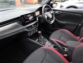 Amundsen satellite navigation with 9.2"glass colour touchscreen display, web radio, voice control and traffic sign recognition, Bluetooth system, E-call, Front assist system, Gesture control, PAS, Service indicator, Speed limiter, Wireless Smartlink for Apple CarPlay (wired for Android Auto), 8 Speakers, Auxiliary input socket, DAB Digital radio, Black door mirrors, Black radiator grille, Black rear diffuser, Body colour bumpers, Body colour door handles, Body colour roof spoiler, Boot lettering in black, Chrome grille surround, Dimming rear view mirror with black surround, Electrically adjustable and heated door mirrors, Front and rear electric windows, Front sport bumper, Full LED headlights with adaptive front light system, cornering function, fog lights and dynamic indicators, Headlight range control, Heated rear window, High functionality rear led lights with dynamic indicators, KAMIQ Door sills, LED daytime running lights, LED third brake light, Light sensors, Monte carlo plaque, Panoramic sunroof with black roof rails, Privacy glass, Rain sensor, Rear fog lights, Rear side wing doors, Rear wiper, 12V Accessory socket in centre console, 3 seat bench in 2nd row, Aluminium pedals, Black ceiling for black/beige interior, Black roof lining, Chrome inner door handles, Cloth upholstery, Front head restraints, Glove compartment with illumination, Ice scraper, Isofix child seat fittings on outer rear seats, ISOFIX on front passenger seat, Leather gear lever, Manual lumbar support for front seats, Rake/reach adjustable steering wheel, Reading lights, Single front passenger seat, Sports seats, Sun visors with illumination on front passenger, Textile floor mats, Third rear headrest, Top tether for front passenger seat, Umbrella in driver's door, 3x3 point rear seatbelts, Airbags - driver and front passenger, ESP, Front passenger airbag deactivation switch, Front side airbags with curtain airbags, Hill hold control, Manual parking brake, Manual rear child locks, One tone horn, Rear disc brakes, Seatbelt reminder for driver an co-driver, Traction control, Tyre pressure monitor, Anti-theft alarm system with interior monitoring, backup horn, towing protection and remote central locking with SAFE system, Anti-theft wheel bolts, Electronic engine immobilizer, Chrome air vent surrounds, 18"Vega alloy wheels in black,