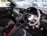 Amundsen satellite navigation with 9.2"glass colour touchscreen display, web radio, voice control and traffic sign recognition, Bluetooth system, E-call, Front assist system, Gesture control, PAS, Service indicator, Speed limiter, Wireless SmartLink for apple car play, android auto and mirrorlink, 8 speakers, Auxiliary input socket, DAB Digital radio, Black door mirrors, Black radiator grille, Black rear diffuser, Body colour bumpers, Body colour door handles, Body colour roof spoiler, Boot lettering in black, Chrome grille surround, Dimming rear view mirror with black surround, Electrically adjustable and heated door mirrors, Front and rear electric windows, Front sport bumper, Full LED headlights with adaptive front light system and front cornering fog lights, Headlight range control, Heated rear window, High functionality rear led lights with dynamic indicators, KAMIQ Door sills, LED daytime running lights, LED third brake light, Light sensors, Monte carlo plaque, Panoramic sunroof with black roof rails, Privacy glass, Rain sensor, Rear fog lights, Rear side wing doors, Rear wiper, 12V Accessory socket in centre console, 3 seat bench in 2nd row, Aluminium pedals, Black ceiling for black/beige interior, Black roof lining, Chrome inner door handles, Cloth upholstery, Front head restraints, Glove compartment with illumination, Ice scraper, Isofix child seat fittings on outer rear seats, ISOFIX on front passenger seat, Leather gear lever, Manual lumbar support for front seats, Rake/reach adjustable steering wheel, Reading lights, Single front passenger seat, Sports seats, Sun visors with illumination on front passenger, Textile floor mats, Third rear headrest, Top tether for front passenger seat, Umbrella in driver's door, 3x3 point rear seatbelts, Airbags - driver and front passenger, ESP, Front passenger airbag deactivation switch, Front side airbags with curtain airbags, Hill hold control, Manual parking brake, Manual rear child locks, One tone horn, Rear disc brakes, Seatbelt reminder for driver an co-driver, Traction control, Tyre pressure monitor, Anti-theft alarm system with interior monitoring, backup horn, towing protection and remote central locking with SAFE system, Anti-theft wheel bolts, Electronic engine immobilizer, Chrome air vent surrounds, 18"Vega alloy wheels in black,