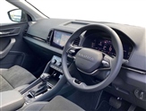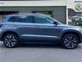 Advanced driver attention and drowsiness monitor, Drive Mode Selection including ECO function, Electro-mechanical PAS, Emergency services call system, Outside temperature gauge, Sensor for driver assistance systems, Service interval indicator, SmartLink wireless for Apple and wired for Android, Start/stop system with regenerative braking, Traffic sign recognition, USB C Port x 2 in front centre console, Virtual Cockpit - 10.25"digital display, Virtual pedal with electrically operated boot door, Wireless smartphone charging, DAB radio with Bluetooth, USB connection, Acoustic glass, Aero front windscreen wipers with intermittent function, Auto dimming rear view mirror with light and rain sensors, Black electric window control buttons, Body colour door mirrors and handles, Electric front and rear windows with child proof lock, Extended rear roof spoiler, Heated rear windscreen, LED daytime running lights, LED rear lights with high functionality welcome effect and dynamic indicators, Light assistant (coming/leaving home/tunnel light), Plastic scuff plates in door apertures, Privacy glass, Rear side wing doors, Rear window wiper with washer system and intermittent control, Safety reflectors on front doors, Third brake light, Unique dark chrome design logo on alloy wheels, 1.5 litre bottle holders in driver and front passenger door panels, 12V socket in boot, 12v socket in front centre armrest with storage compartment and rear air vents, 2 spoke leather heated multifunction steering wheel with DSG paddles, 2 x Tablet holder, 3 rear height adjustable headrests, 3 seat bench in 2nd row, 4 foldable roof handles with rear coat hooks, Black floor carpet, Cargo elements in boot, Chrome inner door handles, Foldable hooks in the boot, Front head restraints, Height adjustable front three point seats belts with tensioners, Height/reach adjust steering wheel, Ice scraper, Illuminated glovebox, Illuminated luggage compartment, Interior noise suppression, Isofix child seat preparation for front passenger seat, Isofix child seat preparation outer rear, Manual lumbar support for front seats, Pearl grey interior ceiling, Pen holder, Pollen filter, Rear boot cover, Rear package tray, Rear reading lights, Rubbish bin door, Safety vest holder, Single front passenger seat, Skoda lettering on steering wheel, Storage box in upper central dashboard closed, Sunvisors with illuminated vanity mirrors, Textile floor mats, Ticket holder, Columbus pack - Karoq, Design Pack - Karoq, Non Smokers pack, Parking pack - Karoq, Automatic door unlocking in case of crash, Automatic fuel cut off in case of crash, Driver airbag, Electronic parking brake with auto hold function, Emergency rear braking signal, ESC (incl. ABS+MSR+ASR+EDS+HBA+DSR+RBS+MKB), Front side airbags, Head airbags, Hill hold control, Knee airbags, Passenger airbag with switch-off function, Pedestrian monitor, Seatbelt reminder signalisation and pretensioner for all seats, Three point seatbelts rear, Two tone horn, Tyre pressure monitor, Alarm with interior monitoring, back up horn and tilt sensor with safe function, Electronic engine immobiliser, Keyless entry and start/stop, Remote central locking with 2 remote folding keys, Black centre console, Chrome framed air vents, Satin black dashboard, Anti-theft wheel bolts protection, Breakdown and tool kit,