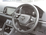 8"Digital display, Amundsen satellite navigation with 8"touchscreen display with maps Europe, WLAN and web radio, Care connect, Driver fatigue sensor, Emergency services call system, Outside temperature gauge, Service interval indicator, SmartLink wireless for Apple and wired for Android, Start/stop system with regenerative braking, USB C Port x 2 in front centre console, 8 speakers, DAB radio with Bluetooth, USB connection, Acoustic glass, Aero front windscreen wipers with intermittent function, Auto dimming rear view mirror with light and rain sensors, Black electric window control buttons, Body colour door mirrors and handles, Dynamic headlight range control with cornering light function, Electric front and rear windows with child proof lock, Electrically adjustable heated folding and auto dimming door mirrors, Front fog lights, Heated rear windscreen, LED daytime running lights, LED Headlights, LED rear lights with high functionality welcome effect and dynamic indicators, Light assistant (coming/leaving home/tunnel light), Plastic scuff plates, Privacy glass, Rear side wing doors, Rear window wiper with washer system and intermittent control, Safety reflectors on front doors, 1.5 litre bottle holders in driver and front passenger door panels, 12V socket in boot, 12v socket in front centre armrest with storage compartment and rear air vents, 2 x Tablet holder, 3 rear height adjustable headrests, 3 seat bench in 2nd row, 4 foldable roof handles with rear coat hooks, Black floor carpet, Chrome inner door handles, Double sided boot floor, Driver/front passenger reading lights, Foldable hooks in the boot, Folding tables on the front seat backrests, Front head restraints, Height adjustable driver and passenger seat, Height adjustable front three point seats belts with tensioners, Height/reach adjust steering wheel, Ice scraper, Illuminated glovebox, Illuminated luggage compartment, Isofix child seat preparation for front passenger seat, Isofix child seat preparation outer rear, Manual lumbar support for front seats, Pearl grey interior ceiling, Pen holder, Pollen filter, Rear boot cover, Rear reading lights, Rubbish bin door, Safety vest holder, Single front passenger seat, Storage box in upper central dashboard closed, Sunvisors with illuminated vanity mirrors, Textile floor mats, Ticket holder, Tool kit, Umbrella under passenger seat, Boot pack - Karoq, Automatic door unlocking in case of crash, Automatic fuel cut off in case of crash, Child locks on rear doors, Driver airbag, Electronic parking brake with auto hold function, Emergency rear braking signal, ESC including ABS, MSR, ASR, EDS, HBA, DSR, RBS, MKB and traction control, Front side airbags, Hill hold control, Knee airbags, Passenger airbag with switch-off function, Pedestrian monitor, Seatbelt reminder signalisation and pretensioner for all seats, Three point seatbelts rear, Two tone horn, Tyre pressure display, Tyre pressure monitor, Alarm with interior monitoring, back up horn and tilt sensor with safe function, Electronic engine immobiliser, Remote central locking with 2 remote folding keys, Black centre console, Chrome framed air vents, Satin black dashboard, Satin black door trim, Anti-theft wheel bolts protection,