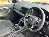 8"Digital display, Care connect, Driver fatigue sensor, Emergency services call system, Outside temperature gauge, Service interval indicator, SmartLink wireless for Apple and wired for Android, Start/stop system with regenerative braking, USB C Port x 2 in front centre console, Virtual cockpit, Virtual pedal with electrically operated boot door, 8 Speakers, DAB radio with Bluetooth, USB connection, Wireless charging without wireless aerial connection, Acoustic glass, Aero front windscreen wipers with intermittent function, Auto dimming rear view mirror with light and rain sensors, Black door mirrors, Black electric window control buttons, Black radiator grille, Black roof rails, Body colour door handles, Electric front and rear windows with child proof lock, Front door steps with SportLine logo, Heated rear windscreen, LED daytime running lights, LED rear lights with high functionality welcome effect and dynamic indicators, Light assistant (coming/leaving home/tunnel light), Panoramic sliding sunroof, Plastic scuff plates, Privacy glass, Protective door side sills in body colour, Rear diffuser, Rear side wing doors, Rear spoiler, Rear window wiper with washer system and intermittent control, Safety reflectors on front doors, Skoda lettering on tailgate in black, Sportline badge on front fender, Sportline decorative inserts with badging, Sports front and rear bumpers, 1.5 litre bottle holders in driver and front passenger door panels, 12V socket in boot, 12v socket in front centre armrest with storage compartment and rear air vents, 3 rear height adjustable headrests, 3 seat bench in 2nd row, 3 spoke leather sports multifunction steering wheel and silver stitching, 4 foldable roof handles with rear coat hooks, Black floor carpet, Black roof headlining, Chrome inner door handles, Double sided boot floor, Foldable hooks in the boot, Front head restraints, Height adjustable front three point seats belts with tensioners, Height/reach adjust steering wheel, Ice scraper, Illuminated glovebox, Illuminated luggage compartment, Isofix child seat preparation outer rear, Manual lumbar support for front seats, Pen holder, Pollen filter, Rear boot cover, Rear reading lights, Rear seats fixed folding and divided 60:40, Rubbish bin door, Safety vest holder, Single front passenger seat, Storage box in upper central dashboard closed, Sunvisors with illuminated vanity mirrors, Textile floor mats, Ticket holder, Titan black interior ceiling, Welcome animation with sportline logo, Boot pack - Karoq, Light Pack - Karoq, Parking pack - Karoq, Automatic door unlocking in case of crash, Automatic fuel cut off in case of crash, Child locks on rear doors, Driver airbag, Electronic parking brake with auto hold function, Emergency rear braking signal, ESC including ABS, MSR, ASR, EDS, HBA, DSR, RBS, MKB and traction control, Front side airbags, Hill hold control, Knee airbags, Passenger airbag with switch-off function, Pedestrian monitor, Seatbelt reminder signalisation and pretensioner for all seats, Three point seatbelts rear, Two tone horn, Tyre pressure display, Tyre pressure monitor, Alarm with interior monitoring, back up horn and tilt sensor with safe function, Electronic engine immobiliser, Keyless entry and start/stop, Remote central locking with 2 remote folding keys, Black air vent surround, Black centre console, Satin black dashboard, Satin black door trim, 19"Sagitarius anthracite alloy wheels with matt black aero inserts, Anti-theft wheel bolts protection, Matt black aero hub caps, Storage on wheel cover, Tool kit,