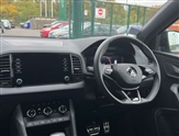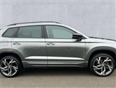 8"Digital display, Advanced driver attention and drowsiness monitor, Emergency services call system, Outside temperature gauge, Sensor for driver assistance systems, Service interval indicator, SmartLink wireless for Apple and wired for Android, Start/stop system with regenerative braking, USB C Port x 2 in front centre console, Virtual Cockpit - 10.25"digital display, Virtual pedal with electrically operated boot door, Wireless smartphone charging, DAB radio with Bluetooth, USB connection, Acoustic glass, Aero front windscreen wipers with intermittent function, Auto dimming rear view mirror with light and rain sensors, Black door mirrors, Black electric window control buttons, Black radiator grille, Black roof rails, Body colour door handles, Electric front and rear windows with child proof lock, Front door steps with SportLine logo, Heated rear windscreen, LED daytime running lights, LED rear lights with high functionality welcome effect and dynamic indicators, Light assistant (coming/leaving home/tunnel light), Panoramic sliding sunroof, Plastic scuff plates in door apertures, Privacy glass, Protective door side sills in body colour, Rear diffuser, Rear side wing doors, Rear spoiler, Rear window wiper with washer system and intermittent control, Safety reflectors on front doors, Skoda lettering on tailgate in black, Sportline badge on front fender, Sportline decorative inserts with badging, Sports front and rear bumpers, Third brake light, 1.5 litre bottle holders in driver and front passenger door panels, 12V socket in boot, 12v socket in front centre armrest with storage compartment and rear air vents, 2 x Tablet holder, 3 rear height adjustable headrests, 3 seat bench in 2nd row, 3 spoke sports leather heated multifunction steering wheel with DSG paddles, 4 foldable roof handles with rear coat hooks, Black floor carpet, Black roof headlining, Chrome inner door handles, Foldable hooks in the boot, Front head restraints, Height adjustable front three point seats belts with tensioners, Height/reach adjust steering wheel, Ice scraper, Illuminated glovebox, Illuminated luggage compartment, Isofix child seat preparation for front passenger seat, Isofix child seat preparation outer rear, Manual lumbar support for front seats, Pen holder, Pollen filter, Rear boot cover, Rear reading lights, Rear seats fixed folding and divided 60:40, Rubbish bin door, Safety vest holder, Single front passenger seat, Storage box in upper central dashboard closed, Sunvisors with illuminated vanity mirrors, Textile floor mats, Ticket holder, Titan black interior ceiling, Umbrella under passenger seat, Under passenger seat storage compartment, LED Interior lighting pack with Skoda welcome logo - Karoq, Light Pack - Karoq, Non Smokers pack, Automatic door unlocking in case of crash, Automatic fuel cut off in case of crash, Driver airbag, Electronic parking brake with auto hold function, Emergency rear braking signal, ESC (incl. ABS+MSR+ASR+EDS+HBA+DSR+RBS+MKB), Front side airbags, Head airbags, Hill hold control, Knee airbags, Passenger airbag with switch-off function, Pedestrian monitor, Seatbelt reminder signalisation and pretensioner for all seats, Three point seatbelts rear, Two tone horn, Tyre pressure monitor, Alarm with interior monitoring, back up horn and tilt sensor with safe function, Electronic engine immobiliser, Keyless entry and start/stop, Remote central locking with 2 remote folding keys, Black air vent surround, Black centre console, carbon door decor, Satin black dashboard, Satin black door trim, 19"Sagittarius anthracite alloy wheels, Anti-theft wheel bolts protection, Breakdown and tool kit,