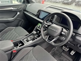 Advanced driver attention and drowsiness monitor, Emergency services call system, Outside temperature gauge, Sensor for driver assistance systems, Service interval indicator, SmartLink wireless for Apple and wired for Android, Start/stop system with regenerative braking, Traffic sign recognition, USB C Port x 2 in front centre console, Virtual Cockpit - 10.25"digital display, Virtual pedal with electrically operated boot door, Wireless smartphone charging, DAB radio with Bluetooth, USB connection, Acoustic glass, Aero front windscreen wipers with intermittent function, Auto dimming rear view mirror with light and rain sensors, Black door mirrors, Black electric window control buttons, Black radiator grille, Black roof rails, Body colour door handles, Electric front and rear windows with child proof lock, Extended rear roof spoiler, Front door steps with SportLine logo, Heated rear windscreen, LED daytime running lights, LED rear lights with high functionality welcome effect and dynamic indicators, Light assistant (coming/leaving home/tunnel light), Panoramic sliding sunroof, Plastic scuff plates in door apertures, Privacy glass, Protective door side sills in body colour, Rear diffuser, Rear side wing doors, Rear window wiper with washer system and intermittent control, Safety reflectors on front doors, Skoda lettering on tailgate in black, Sportline badge on front fender, Sports front and rear bumpers, Third brake light, Unique dark chrome design logo on alloy wheels, 1.5 litre bottle holders in driver and front passenger door panels, 12V socket in boot, 12v socket in front centre armrest with storage compartment and rear air vents, 2 x Tablet holder, 3 rear height adjustable headrests, 3 seat bench in 2nd row, 3 spoke sports leather heated multifunction steering wheel with DSG paddles, 4 foldable roof handles with rear coat hooks, Black floor carpet, Cargo elements in boot, Chrome inner door handles, Foldable hooks in the boot, Front head restraints, Height adjustable front three point seats belts with tensioners, Height/reach adjust steering wheel, Ice scraper, Illuminated glovebox, Illuminated luggage compartment, Isofix child seat preparation for front passenger seat, Isofix child seat preparation outer rear, Manual lumbar support for front seats, Pen holder, Pollen filter, Rear backrest release from boot, Rear boot cover, Rear package tray, Rear reading lights, Rear seats fixed folding and divided 60:40, Rubbish bin door, Safety vest holder, Single front passenger seat, Skoda lettering on steering wheel, Sportline decorative inserts, Storage box in upper central dashboard closed, Sunvisors with illuminated vanity mirrors, Textile floor mats, Ticket holder, Titan black interior ceiling, Umbrella under passenger seat, Under passenger seat storage compartment, Columbus pack - Karoq, LED Interior lighting pack with Skoda welcome logo - Karoq, Light Pack - Karoq, Non Smokers pack, Performance pack - Karoq, Winter plus pack with heated front and rear seats - Karoq, Automatic door unlocking in case of crash, Automatic fuel cut off in case of crash, Driver airbag, Electronic parking brake with auto hold function, Emergency rear braking signal, ESC (incl. ABS+MSR+ASR+EDS+HBA+DSR+RBS+MKB), Front side airbags, Head airbags, Hill hold control, Knee airbags, Passenger airbag with switch-off function, Pedestrian monitor, Seatbelt reminder signalisation and pretensioner for all seats, Three point seatbelts rear, Two tone horn, Tyre pressure monitor, Alarm with interior monitoring, back up horn and tilt sensor with safe function, Electronic engine immobiliser, Keyless entry and start/stop, Remote central locking with 2 remote folding keys, Black air vent surround, Black centre console, carbon door decor, Satin black dashboard, Satin black door trim, 19"Sagittarius anthracite alloy wheels, Anti-theft wheel bolts protection, Breakdown and tool kit,