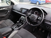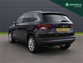Care connect, Drive mode selector, Driver fatigue sensor, Multifunction colour trip computer, Outside temperature gauge, Service interval indicator, SmartLink wireless for Apple and wired for Android, Start/stop system with regenerative braking, USB C Port x 2 in front centre console, DAB radio with Bluetooth, USB connection, Acoustic glass, Aero front windscreen wipers with intermittent function, Automatic headlight control system, Black electric window control buttons, Body colour door mirrors and handles, Body coloured bumpers, Electric front and rear windows with child proof lock, Full LED headlights + adaptive front light system + LED daytime running lights and front cornering fog lights, Headlight washers, Heated rear windscreen, LED rear lights with high functionality, Light assistant (coming/leaving home/tunnel light), Privacy glass, Safety reflectors on front doors, Third brake light, 1.5 litre bottle holders in driver and front passenger door panels, 12V socket in boot, 12v socket in front centre armrest with storage compartment and rear air vents, 2 Folding hooks and nets in boot, 2 Front readings lights for driver and passenger, 3 rear height adjustable headrests, 4 foldable roof handles with rear coat hooks, Cargo elements in boot, Chrome inner door handles, Folding tables on the front seat backrests, Front head restraints, Height adjustable front three point seats belts with tensioners, Height adjustable passenger seat, Height/reach adjust steering wheel, Ice scraper, Illuminated and cooled glovebox, Illuminated luggage compartment, Isofix child seat preparation outer rear, Net programme in boot, Pen holder, Pollen filter, Rear boot cover, Rear reading lights, Retractable parcel shelf attachable to tailgate, Safety vest holder, Storage box in upper central dashboard closed, Storage compartment below the passenger seat, Sunvisors with illuminated vanity mirrors, Textile floor mats, Umbrella under passenger seat, VarioFlex seats with retractable parcel shelf, Chrome roof rails + chrome pack - Karoq, Airbags - Front side, head, knee and curtain, Automatic door unlocking in case of crash, Automatic fuel cut off in case of crash, Driver airbag, Electronic parking brake with auto hold function, Emergency rear braking signal, ESC including ABS, MSR, ASR, EDS, HBA, DSR, RBS, MKB and traction control, Front assist radar scanning of the space in front of the car with automatic braking, Hill hold control, Passenger airbag with switch-off function, Pedestrian monitor, Seatbelt reminder signalisation and pretensioner for all seats, Three point seatbelts rear, Two tone horn, Tyre pressure display, Tyre pressure monitor, Alarm with interior monitoring, back up horn and tilt sensor with safe function, Electronic engine immobiliser, Keyless entry and keyless start with safe system, Remote central locking with 2 remote folding keys, Chrome framed air vents, Storage on wheel cover,